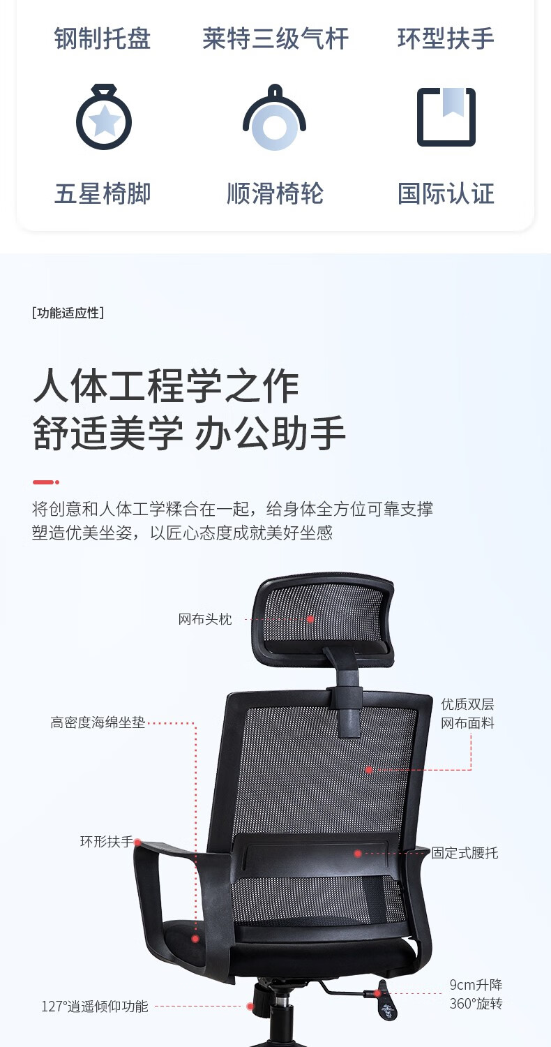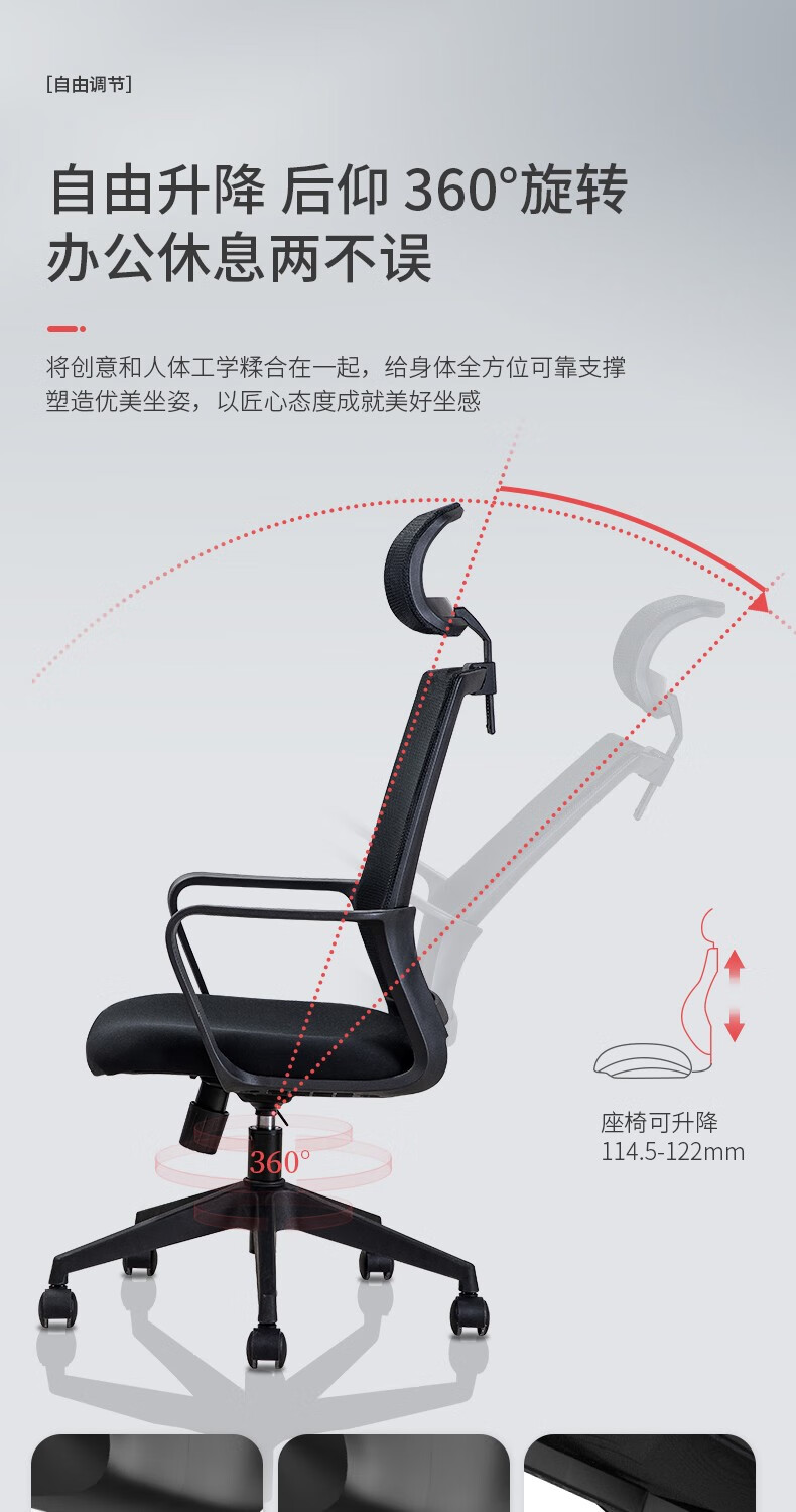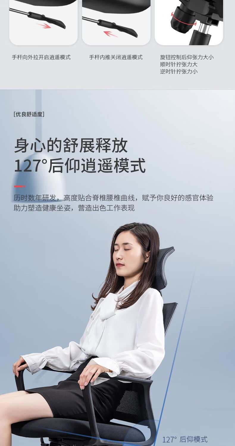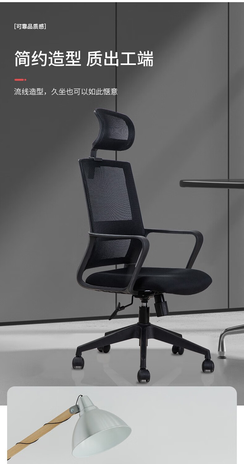 得力(deli) 簡約舒適辦公椅黑色 人體工學(xué)電腦椅 帶頭枕舒適辦公椅子升降可控帶頭枕 升級帶頭枕+逍遙仰傾底盤87092 自營