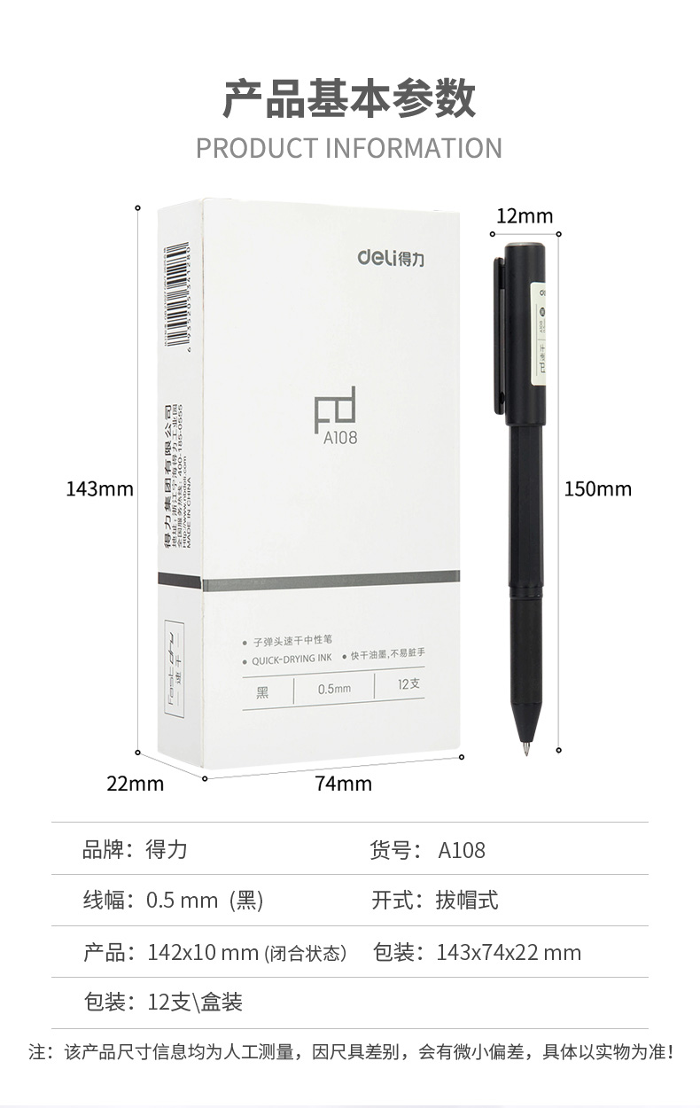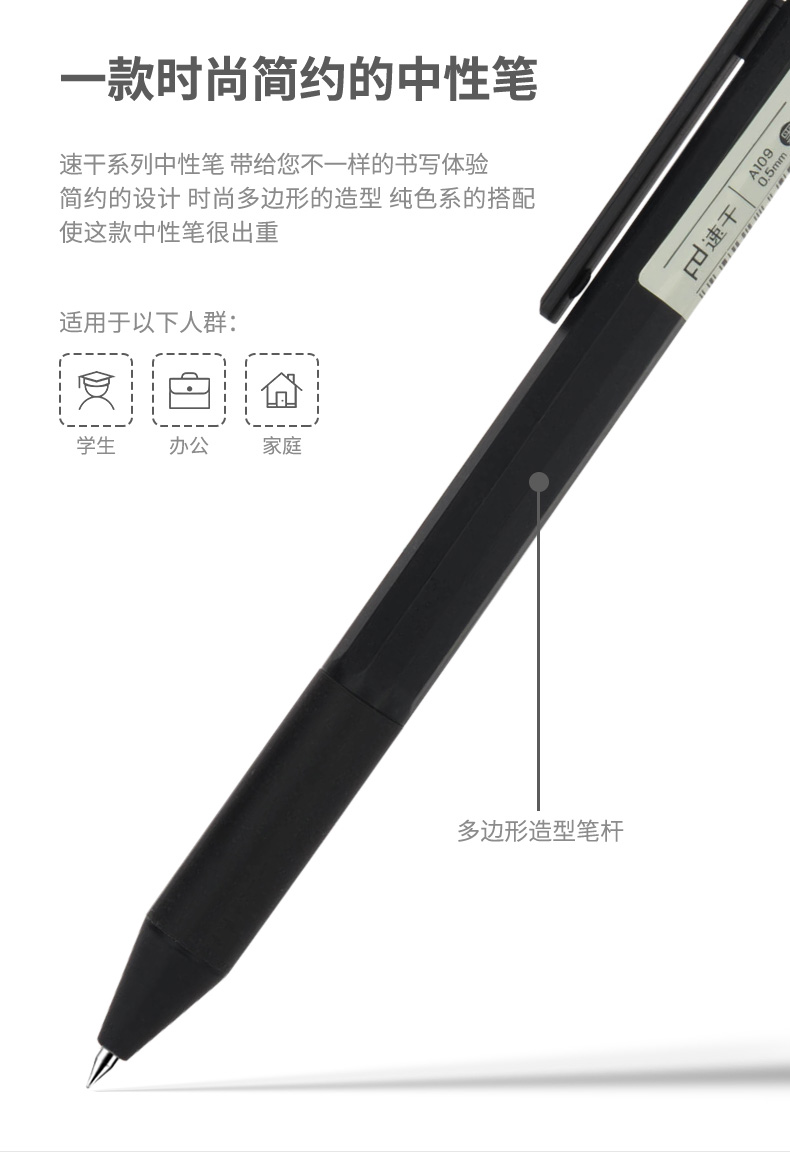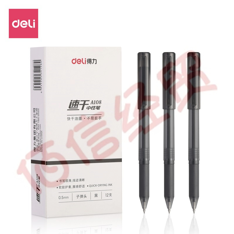 得力(deli) 速干中性筆 水筆 黑色簽字筆 辦公用品 【商務(wù)拔帽款】0.5mm速干中性筆(A108) 自營