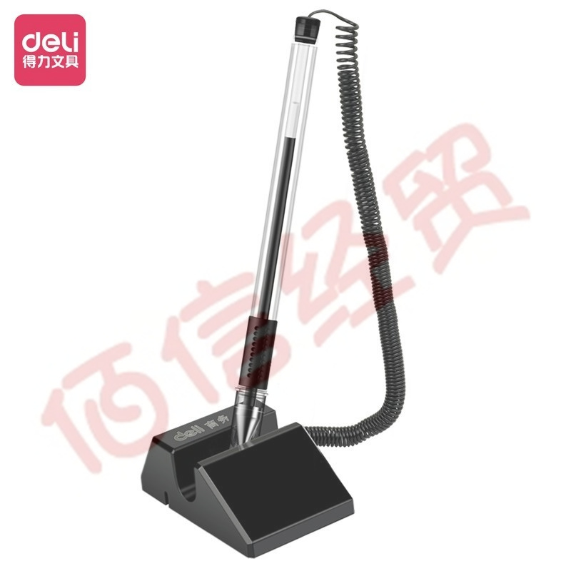 得力(deli)6791 臺筆 固定桌筆 中性筆帶線粘貼桌子簽字筆桌面寫字筆 24支裝 自營
