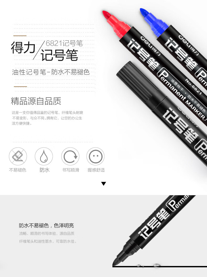 得力思達(dá)6821記號(hào)筆(黑)(10支/盒)5盒裝 油性粗頭記號(hào)筆物流黑色大頭筆 簽名筆馬克筆 自營(yíng)
