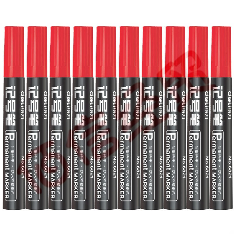 得力思達6821記號筆(紅)(10支/盒)5盒裝 油性粗頭記號筆物流黑色大頭筆 簽名筆馬克筆 自營