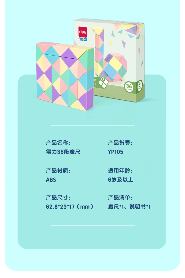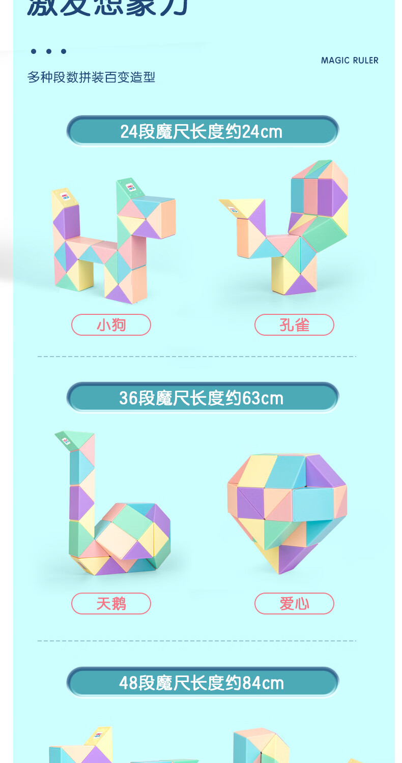 得力(deli) 馬卡龍色系百變魔尺24段36/48/72段幼兒園兒童玩具異形魔尺 【馬卡龍款】36段 自營