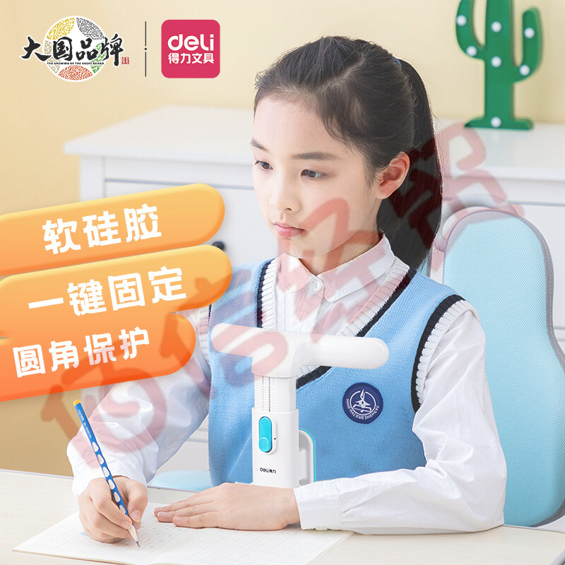 得力(deli)坐姿矯正器 學(xué)生寫字矯正器 兒童糾正寫字姿勢寫作業(yè)預(yù)防低頭正姿支架 一鍵夾桌款74353藍(lán) 自營