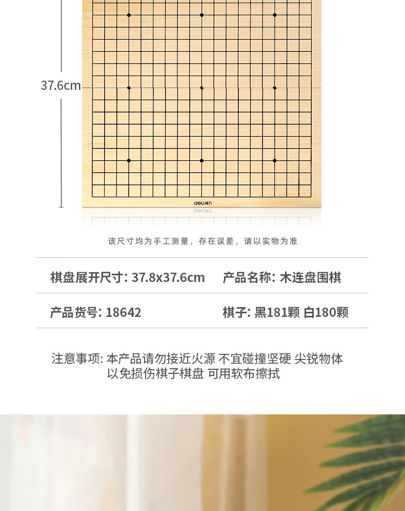 得力 圍棋套裝實木折疊棋盤五子棋桌游 兒童娛樂玩具棋 18642 自營