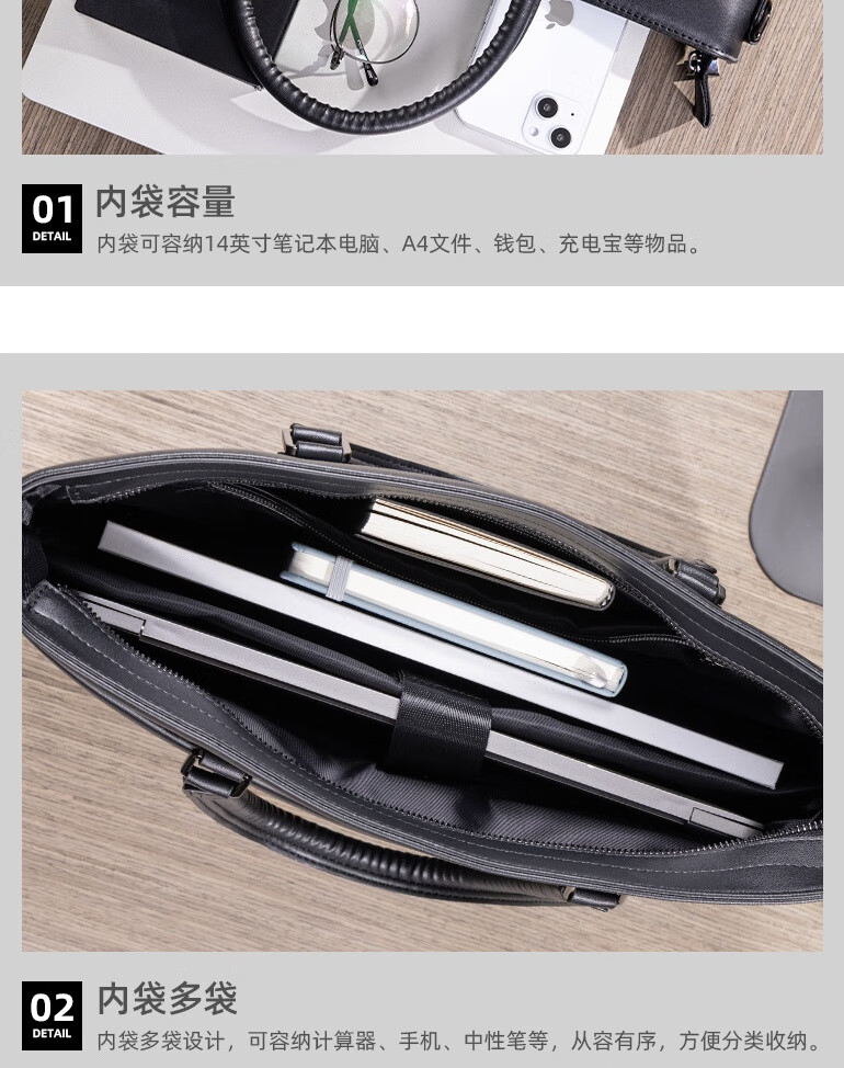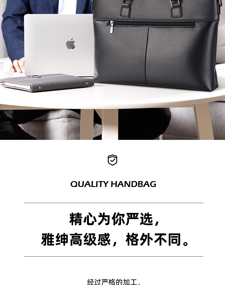 得力(deli)加厚皮質(zhì)立體辦公手提袋/會議包/事務(wù)包/商務(wù)男女職業(yè)拉鏈袋電腦公文包 黑色63813 便攜 自營