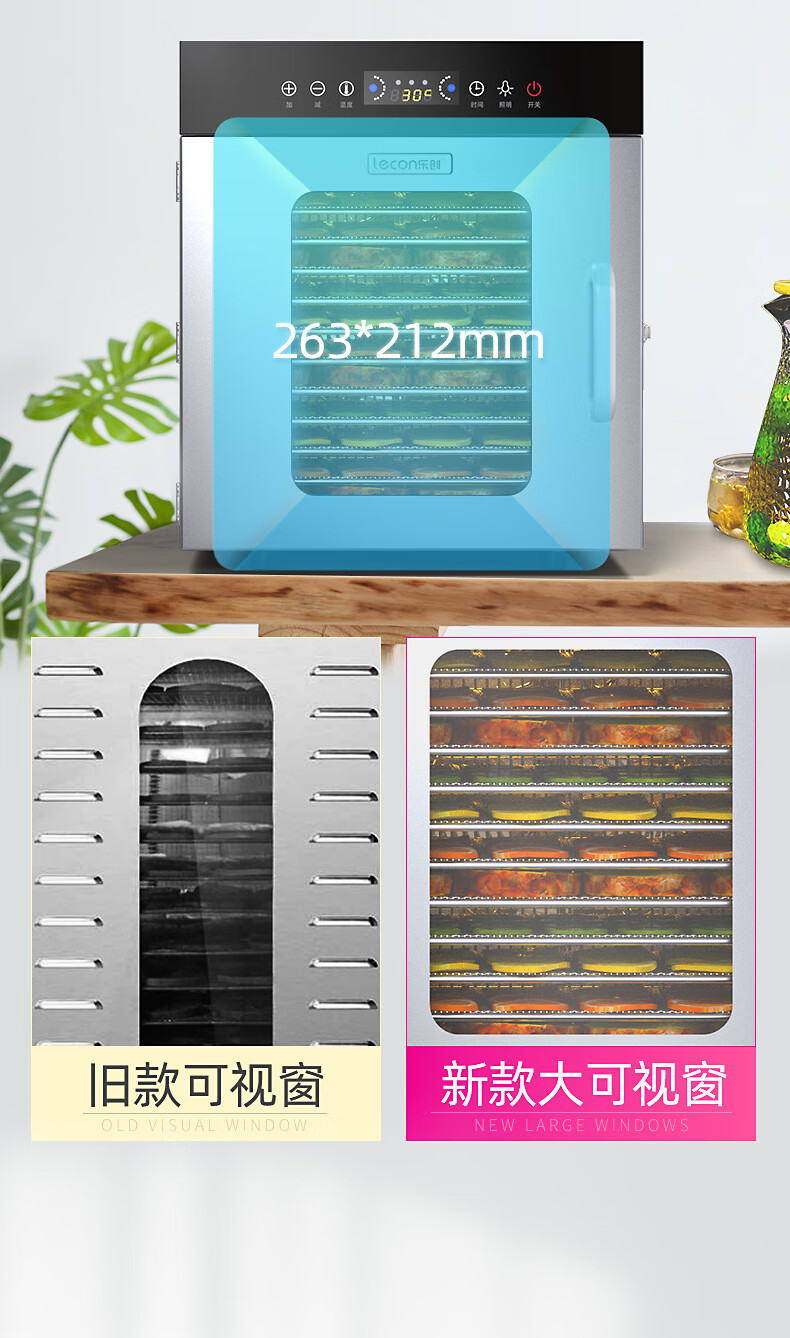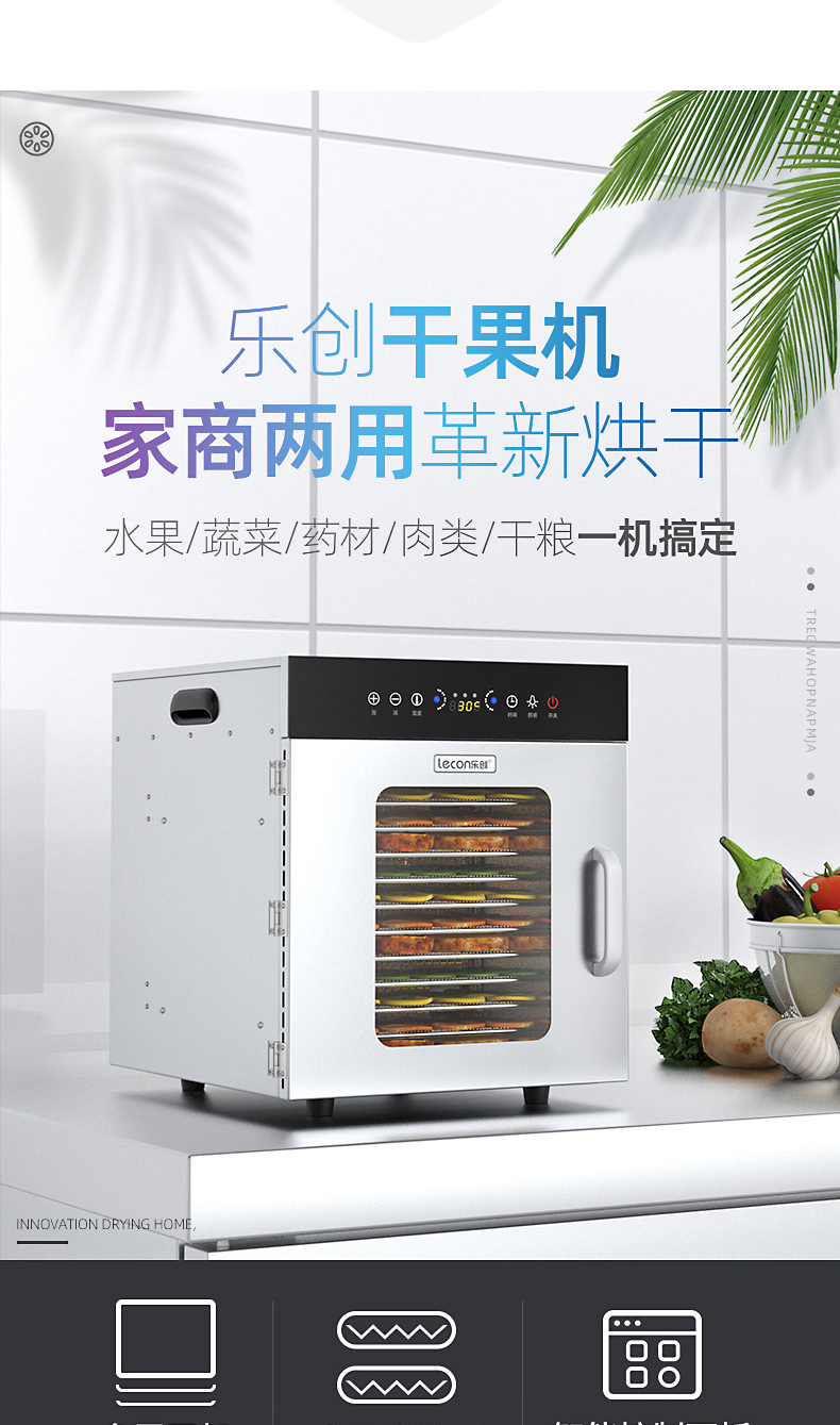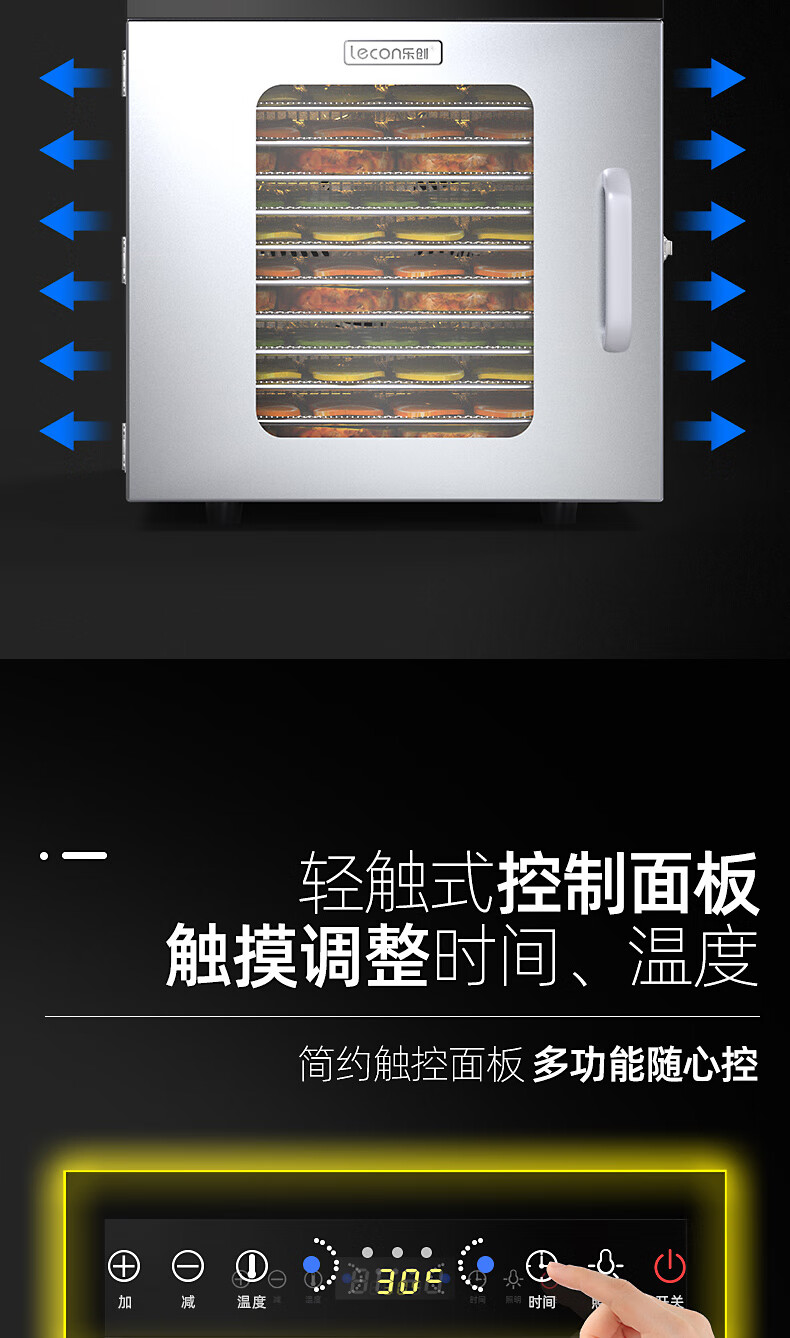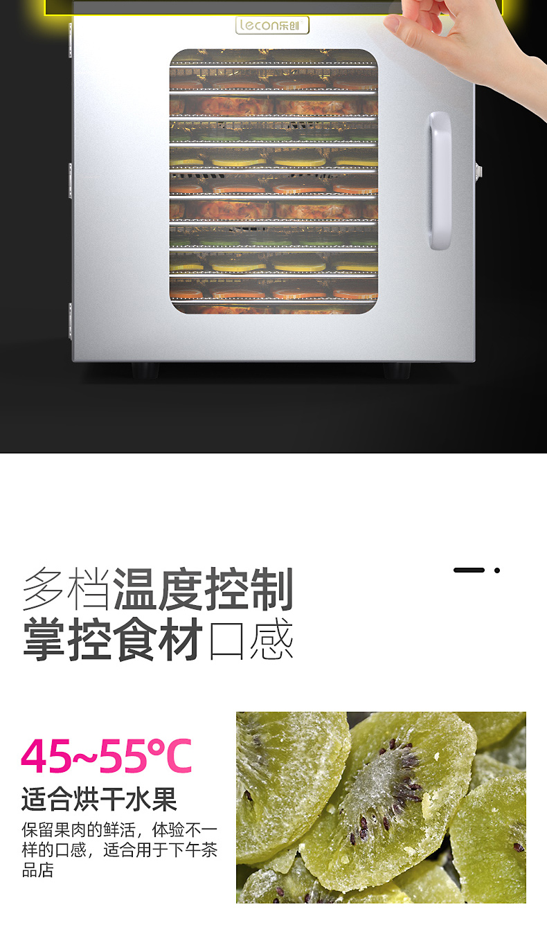 樂創(chuàng)(lecon)食品烘干機(jī)水果干果機(jī)商用風(fēng)干機(jī)不銹鋼脫水機(jī)藥材肉干蔬菜QG-C08企業(yè)采購 自營