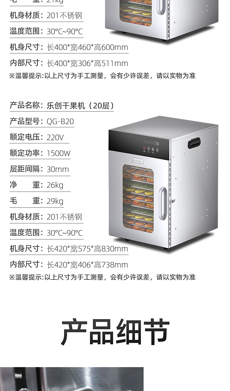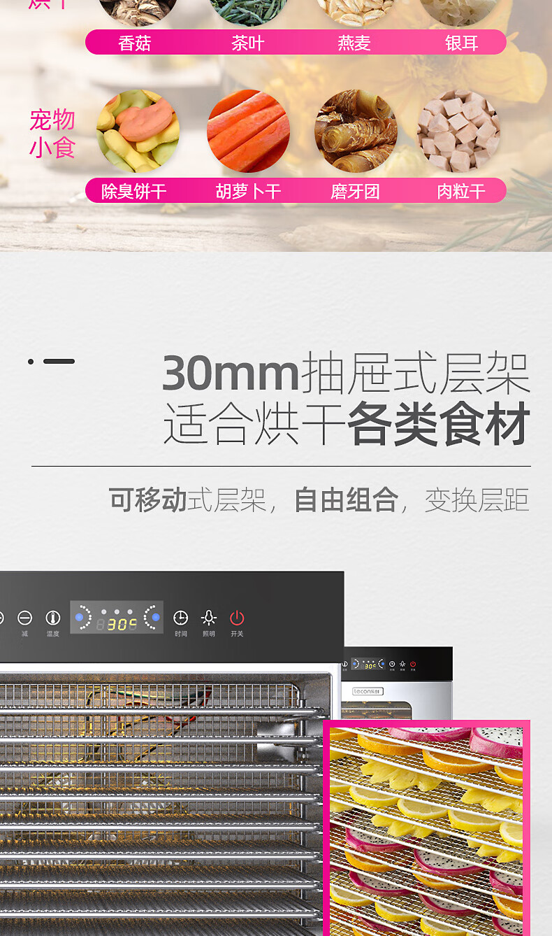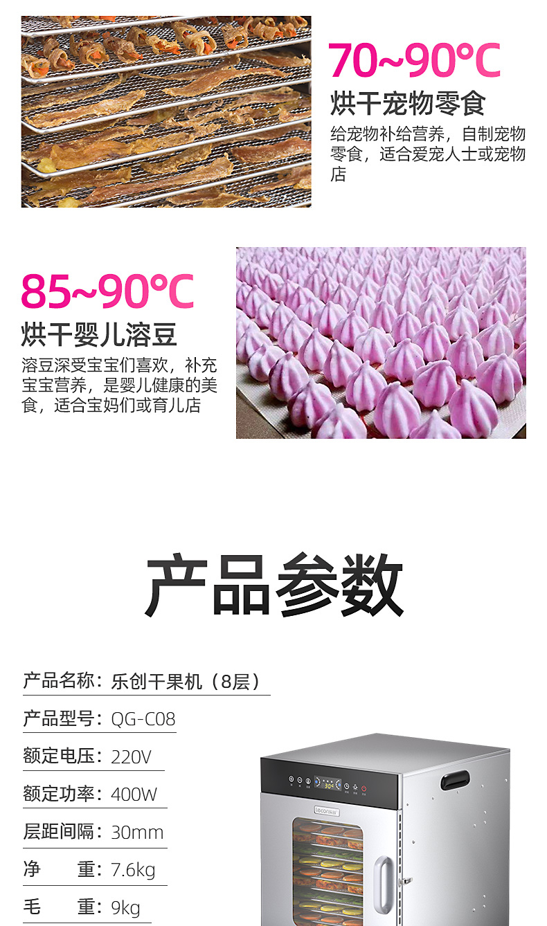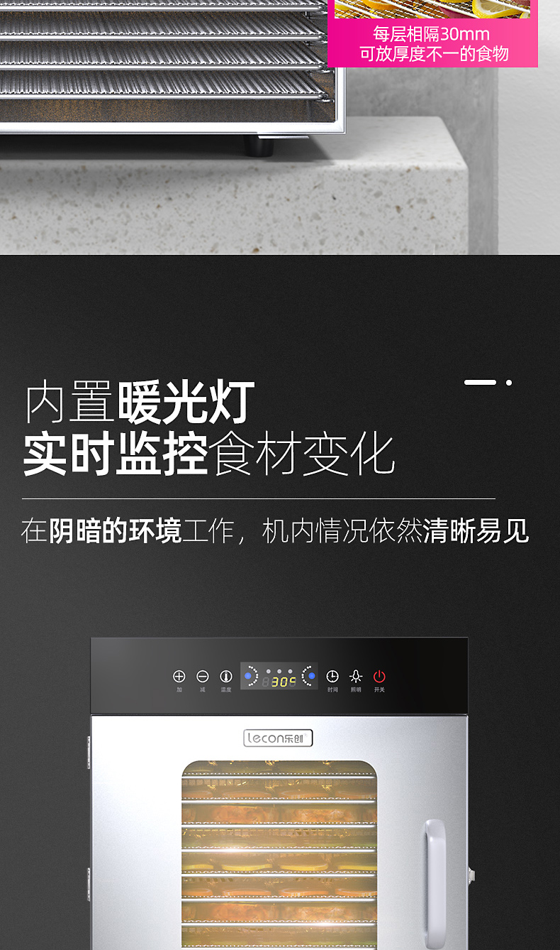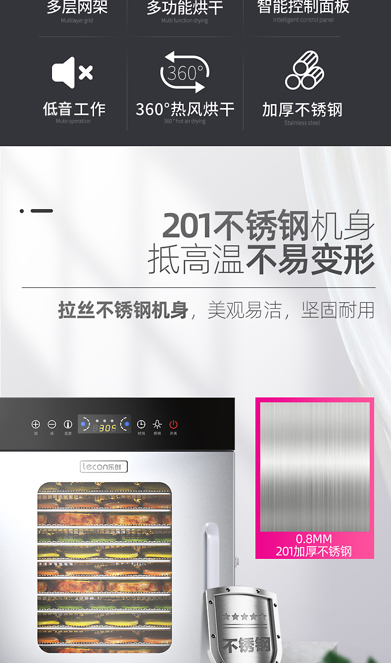 樂創(chuàng)(lecon)食品烘干機(jī)水果干果機(jī)商用風(fēng)干機(jī)不銹鋼脫水機(jī)藥材肉干蔬菜QG-C08企業(yè)采購 自營