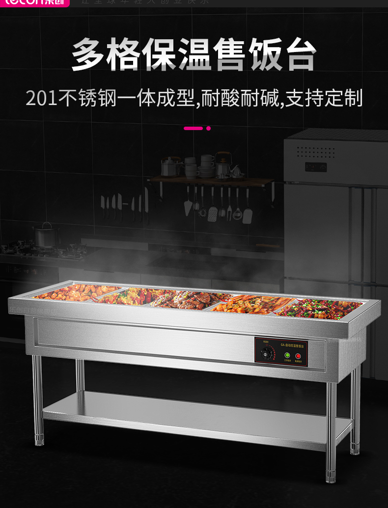 樂創(chuàng)(lecon)商用售飯臺保溫快餐車酒店食堂不銹鋼保溫臺電熱湯池立式大容量分餐臺 LC-GAST006 自營