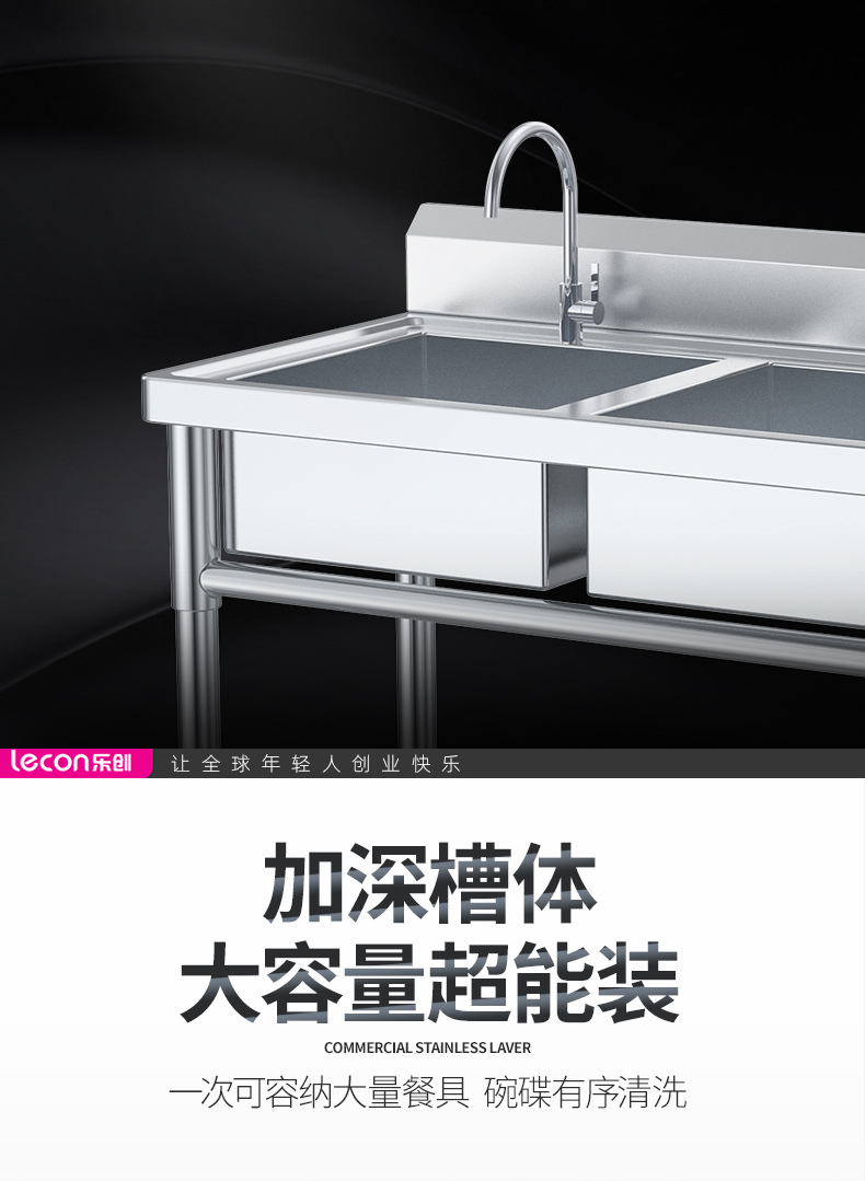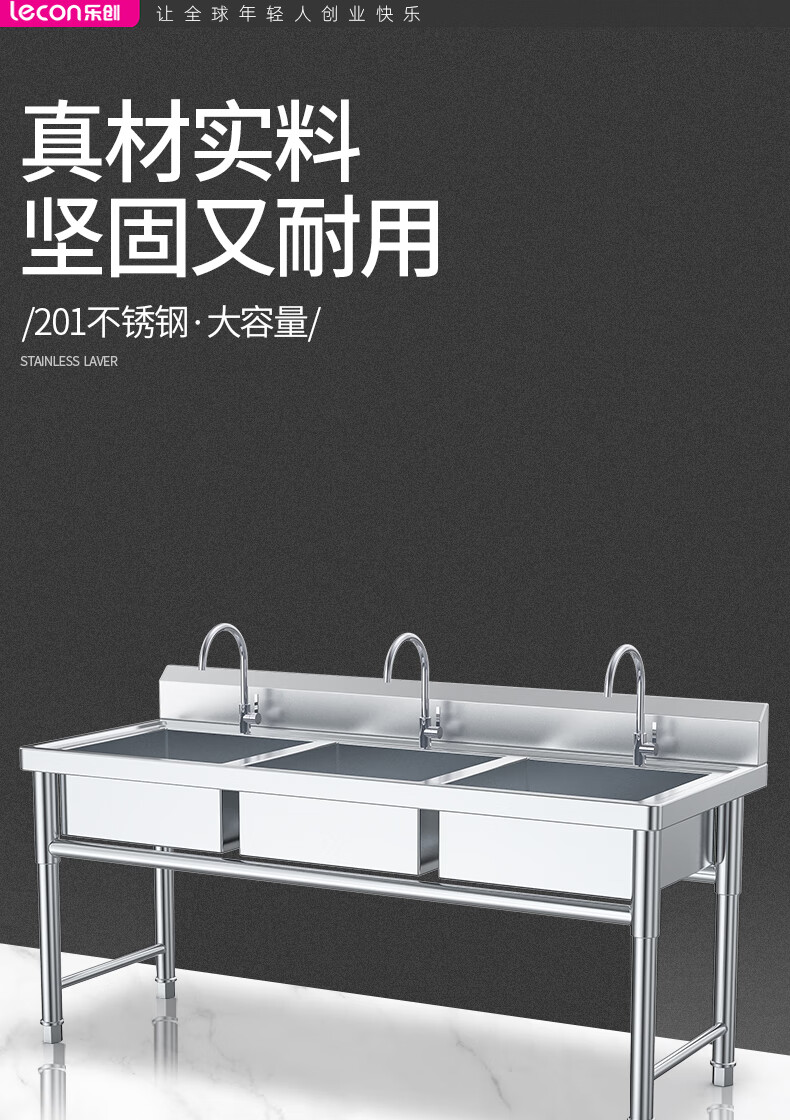 樂創(chuàng)(lecon)商用三星水池 201不銹鋼洗碗洗菜池洗手盆 LC-J-GSC03【企業(yè)工程款】 自營