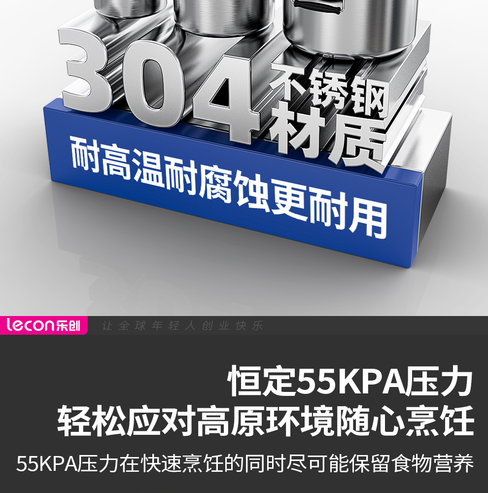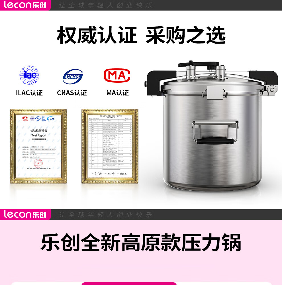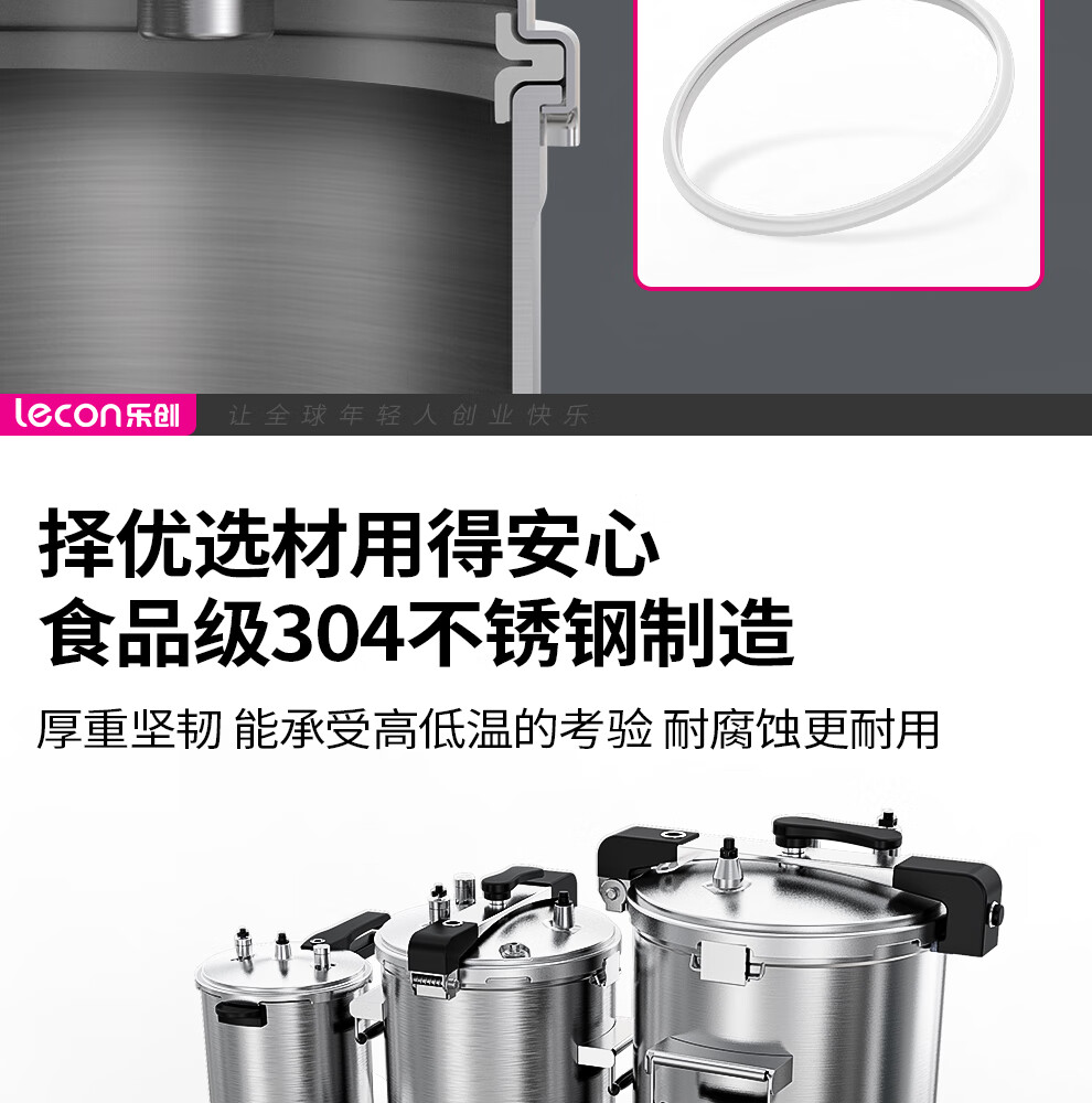 樂創(chuàng)( lecon) 商用高原壓力鍋 304不銹鋼高海拔戶外高壓鍋燃?xì)膺m用 82L LC-J-YD82【企業(yè)采購】 自營