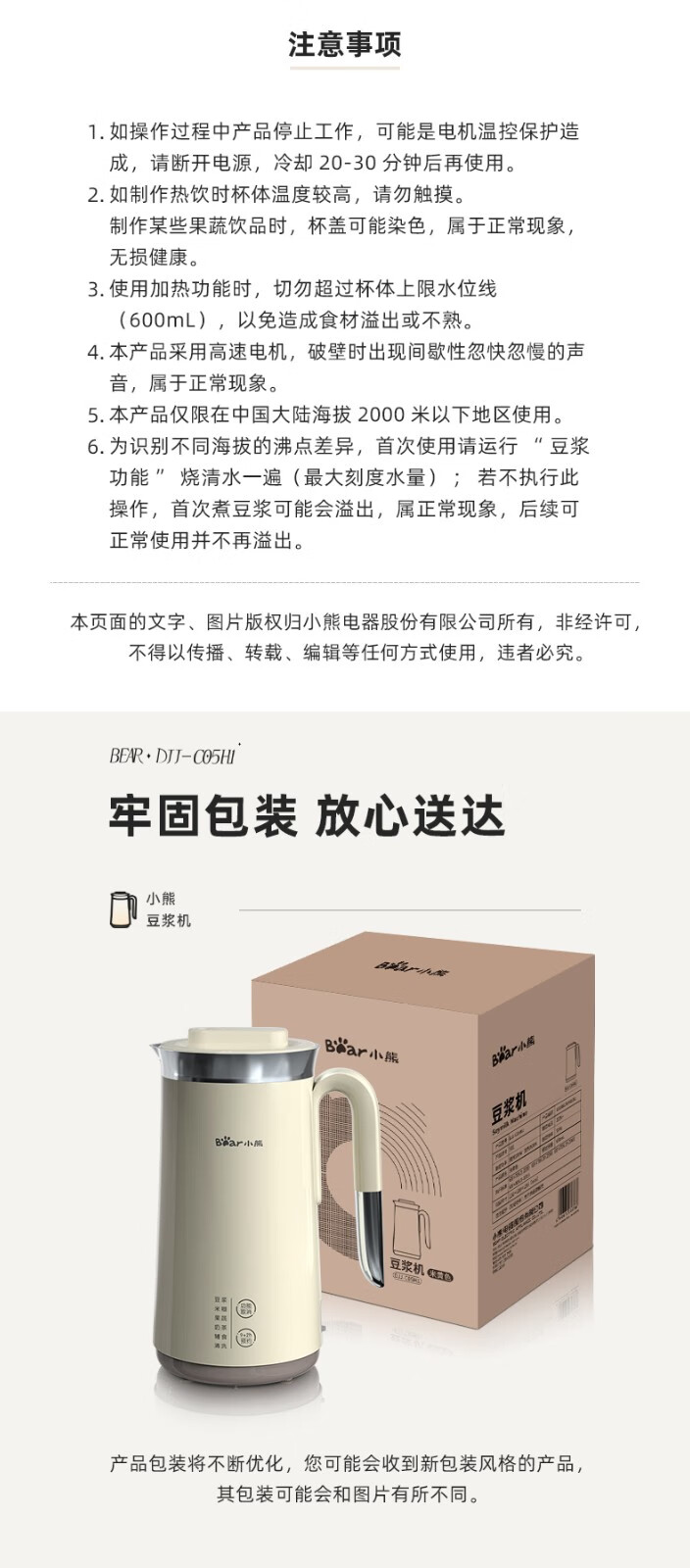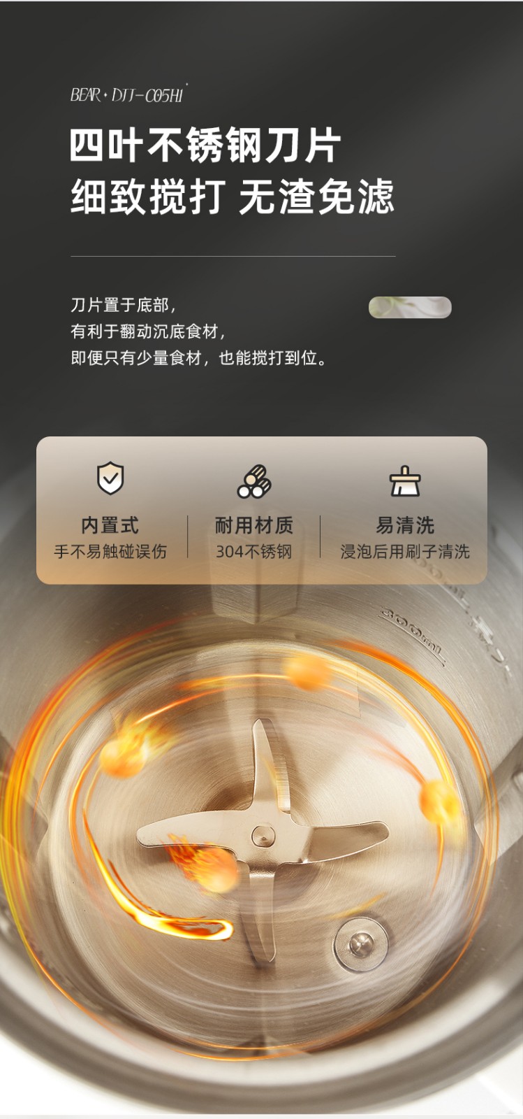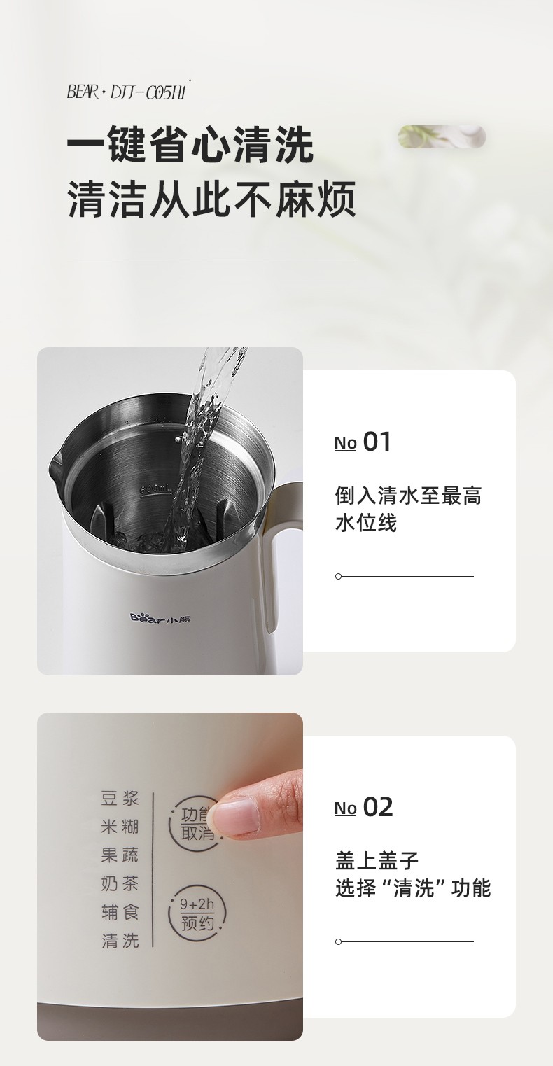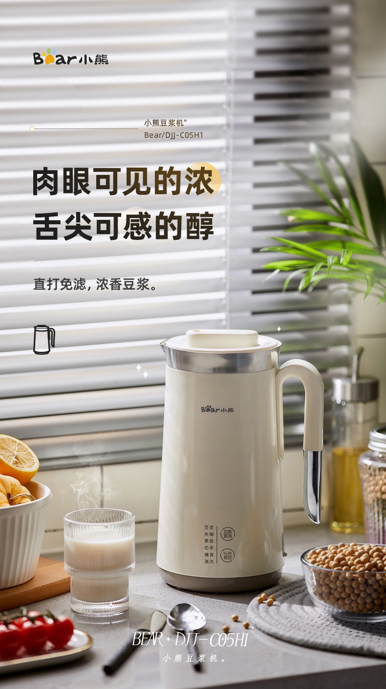 小熊(Bear) 豆?jié){機(jī) 迷你破壁機(jī)家用小型米糊機(jī)1-2人食多功能全自動(dòng)免清洗免過濾 DJJ-C05H1 預(yù)約定時(shí)+長效保溫 自營