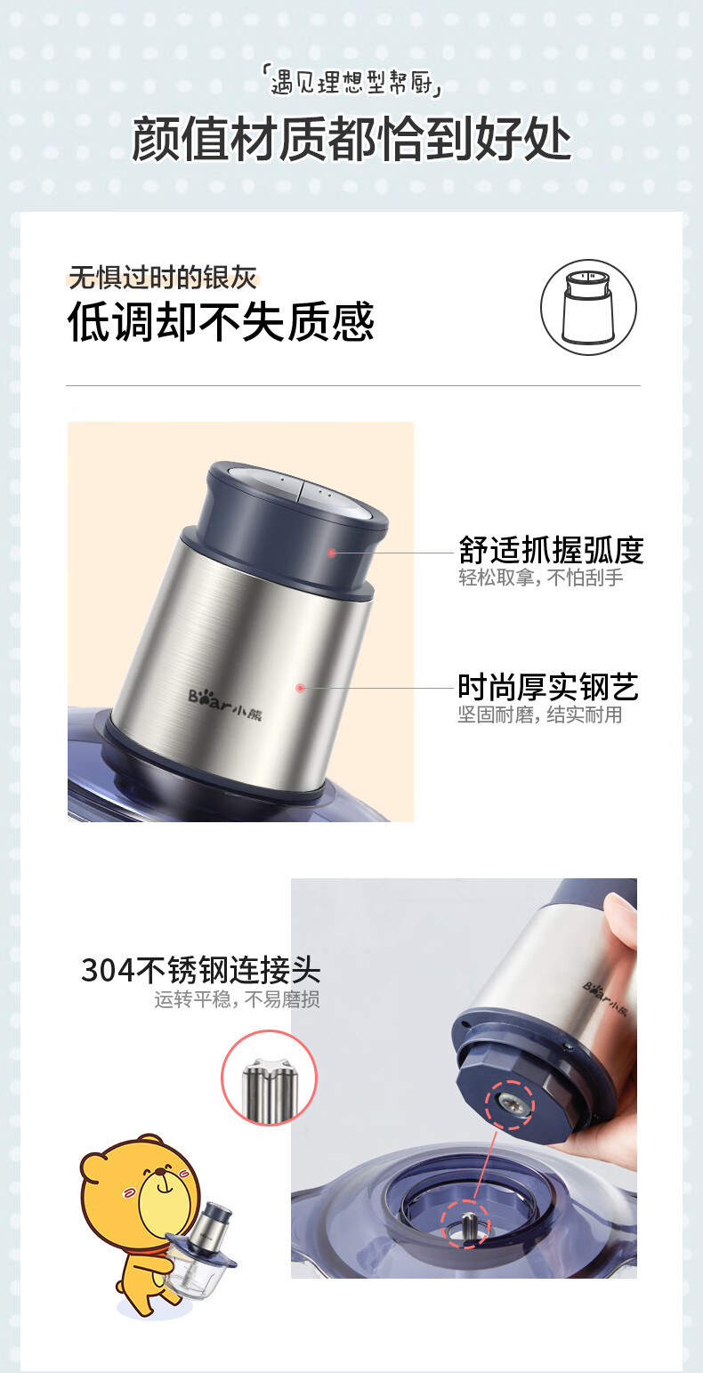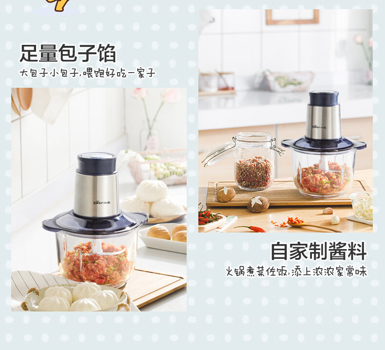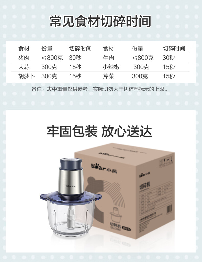 小熊(Bear)絞肉機(jī)多功能電動(dòng)料理機(jī)絞餡機(jī)餃子料理碎肉機(jī)輔食攪拌機(jī)攪肉機(jī)蒜蓉QSJ-E03A9 自營