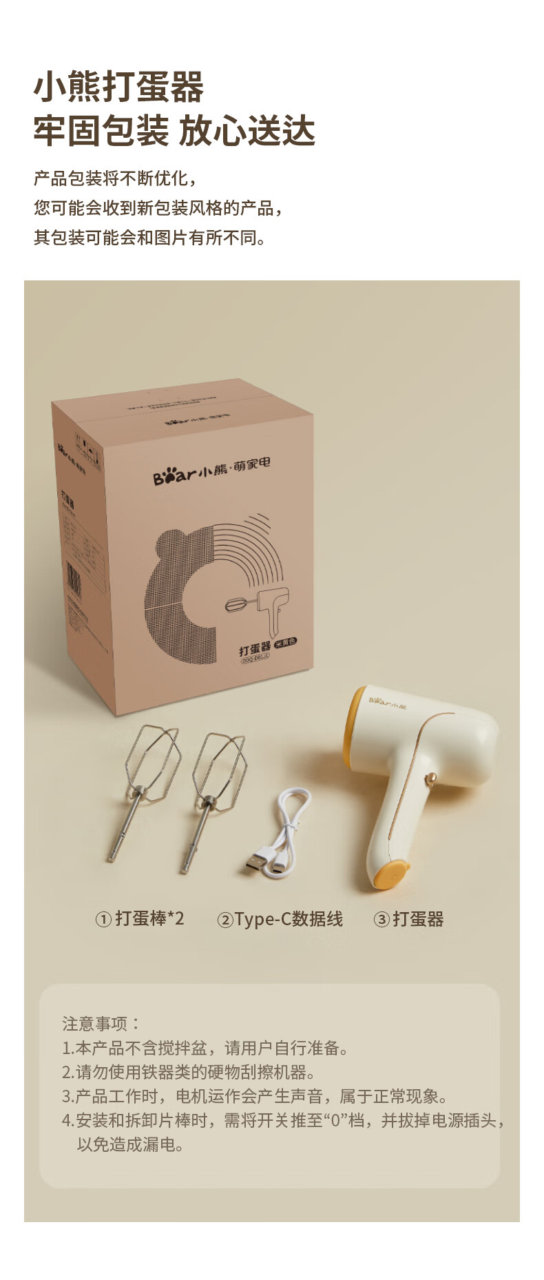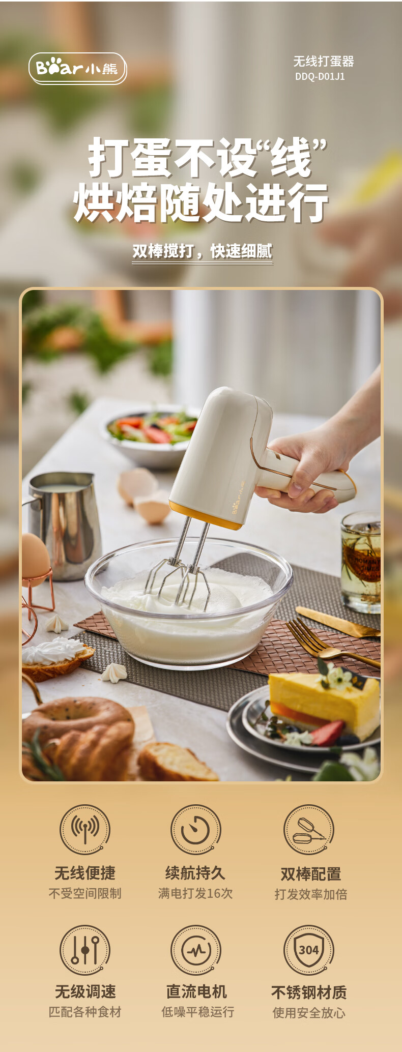 小熊(Bear)打蛋器電動(dòng)充電式迷你打奶油機(jī)攪拌器烘焙奶蓋打發(fā)器手持 【無線款】DDQ-D01J1 自營