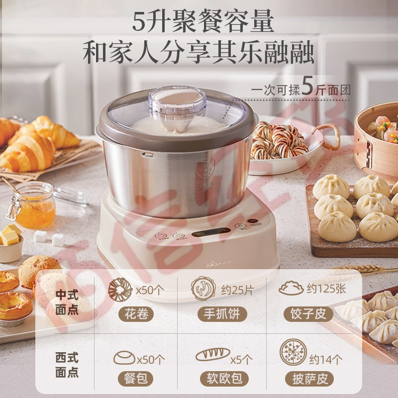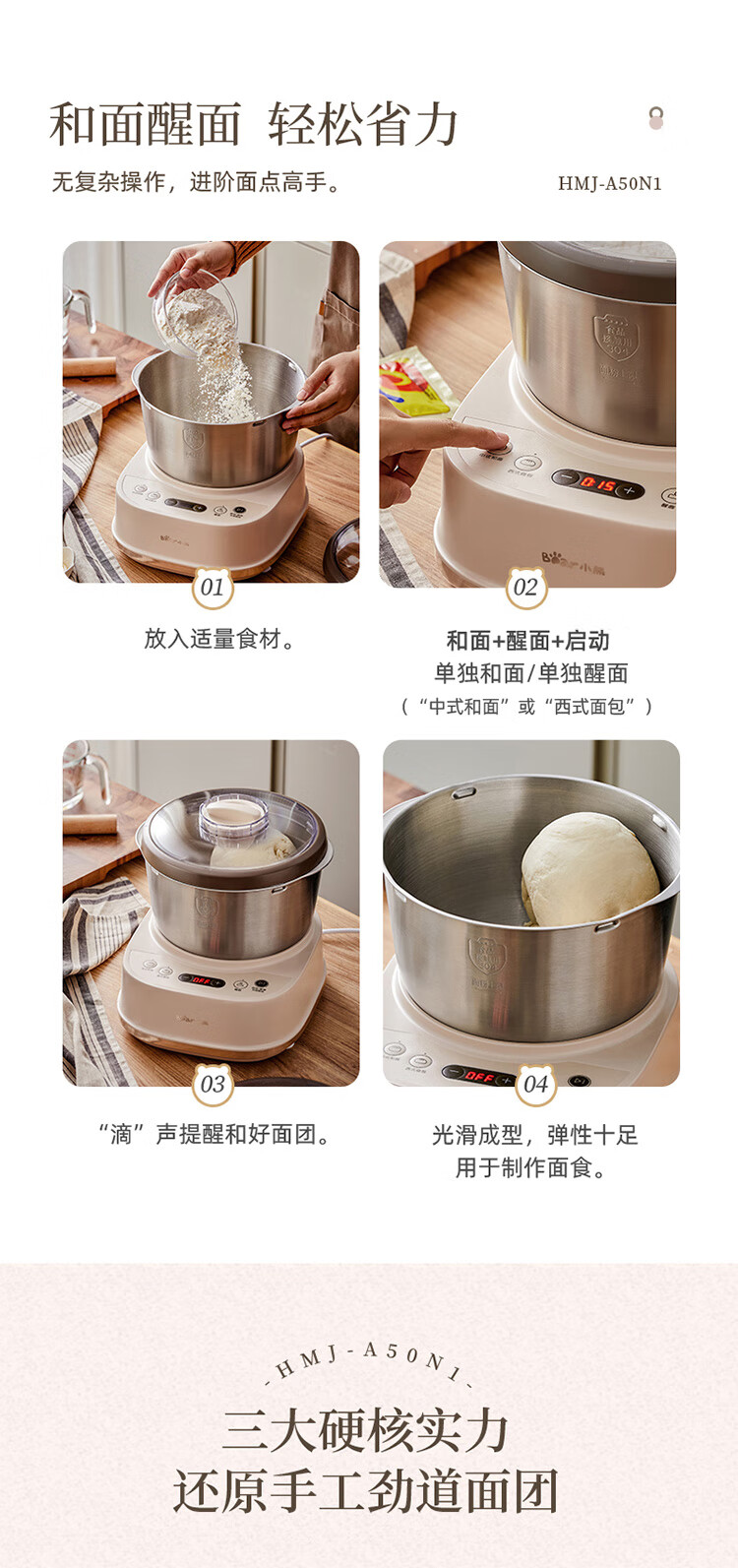 小熊(Bear)和面機(jī) 揉面機(jī) 廚師機(jī) 全自動(dòng)多功能智能和面攪面機(jī) 面包面粉發(fā)酵醒面HMJ-A50N1 自營(yíng)