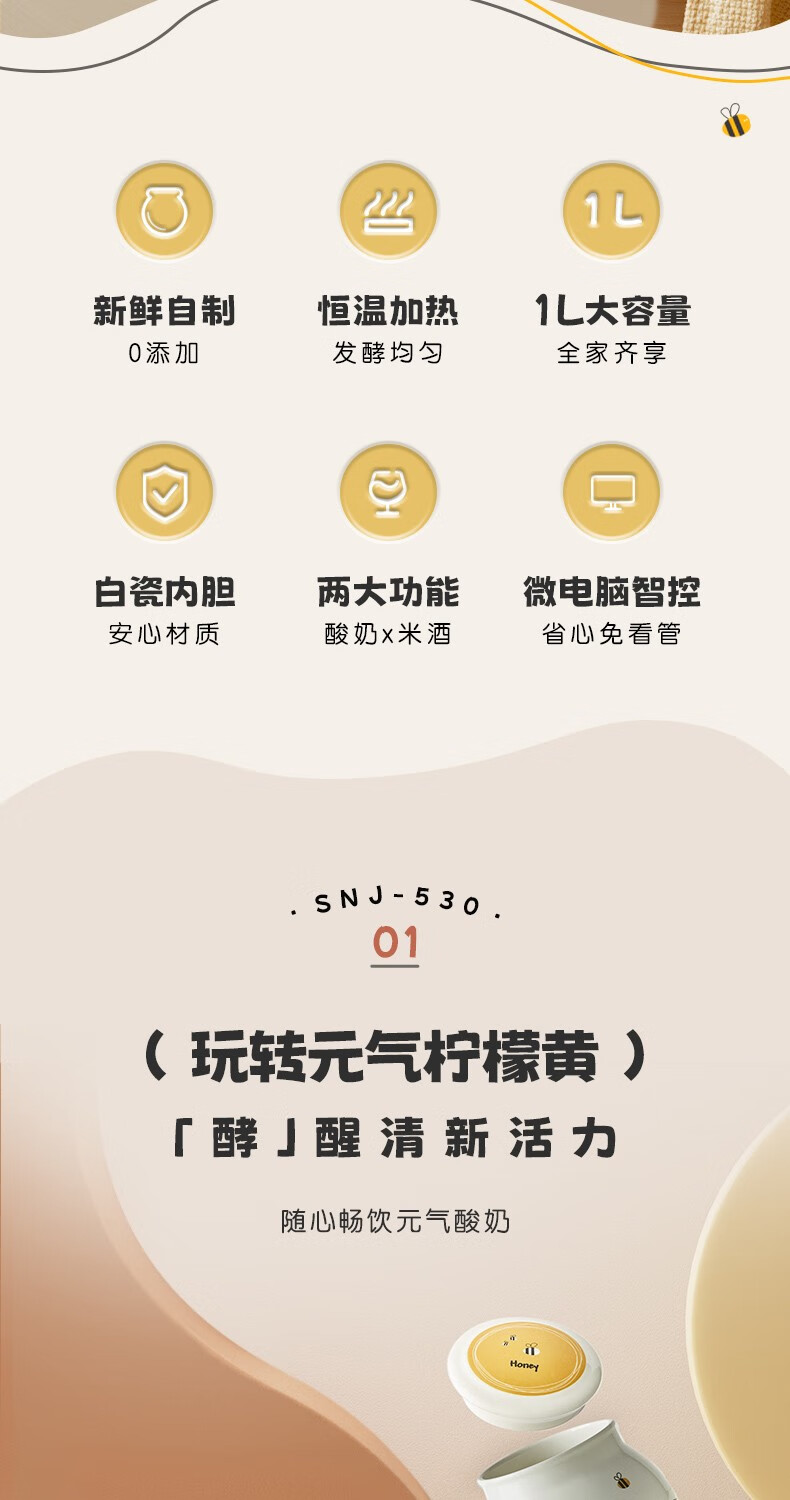 小熊(Bear)米酒酸奶機(jī) 家用小型全自動(dòng)自制酸奶菌粉恒溫發(fā)酵機(jī)米酒機(jī)迷你陶瓷內(nèi)膽 微電腦定時(shí) SNJ-530 自營(yíng)