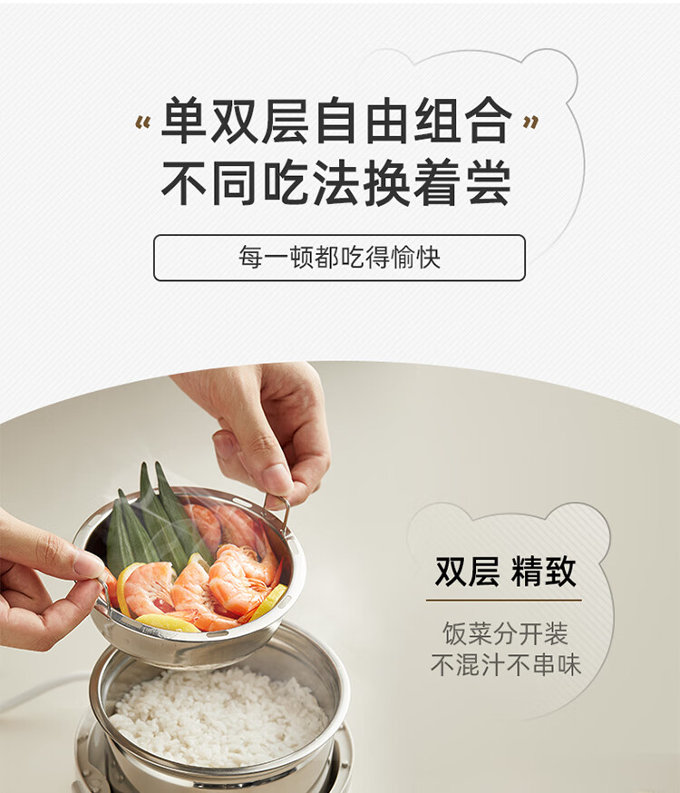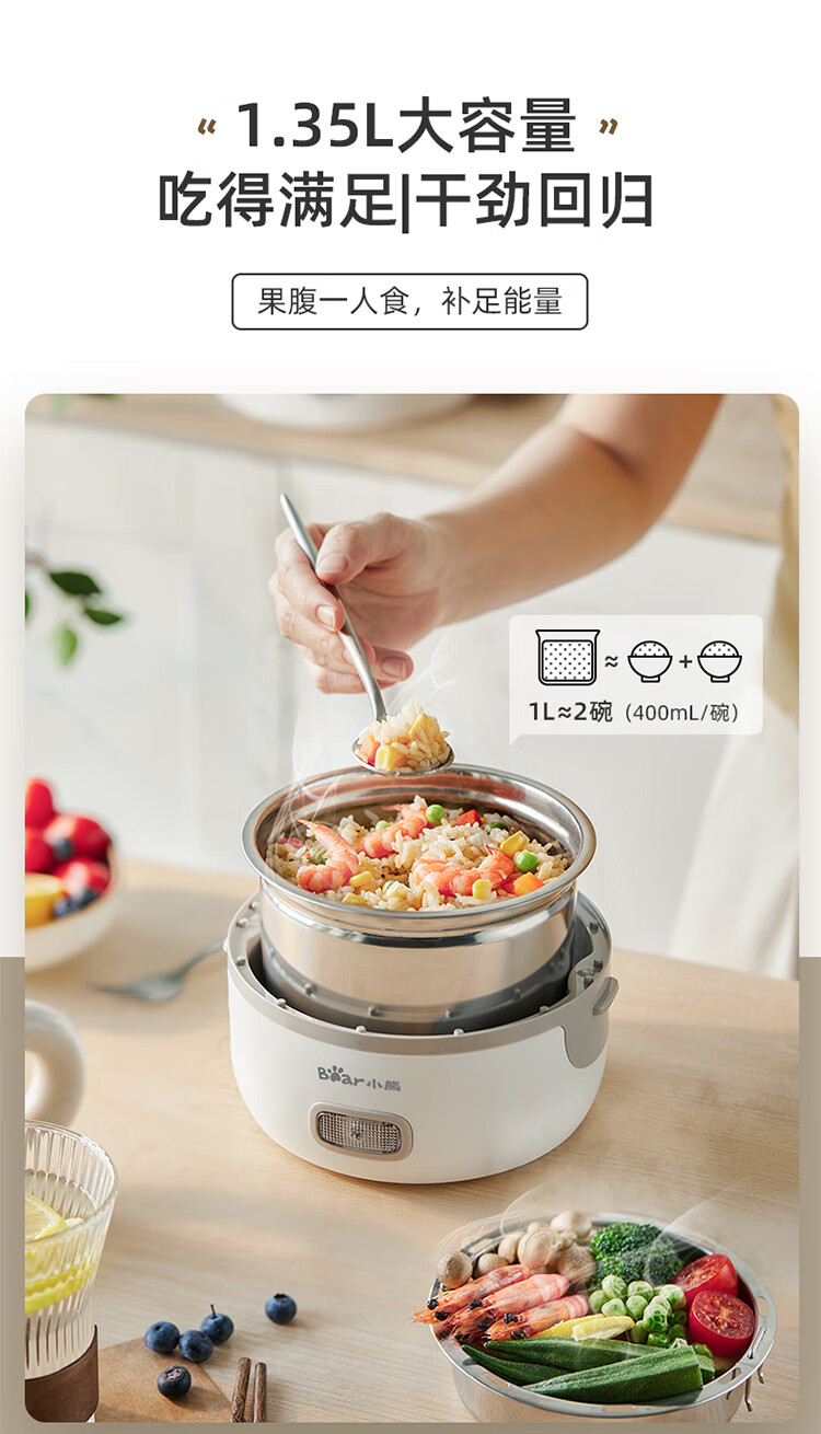 小熊(Bear) 電熱飯盒保溫飯盒可插電便攜煮飯神器便當(dāng)盒DFH-C12W3 DFH-B14S3【安心系列】 自營(yíng)