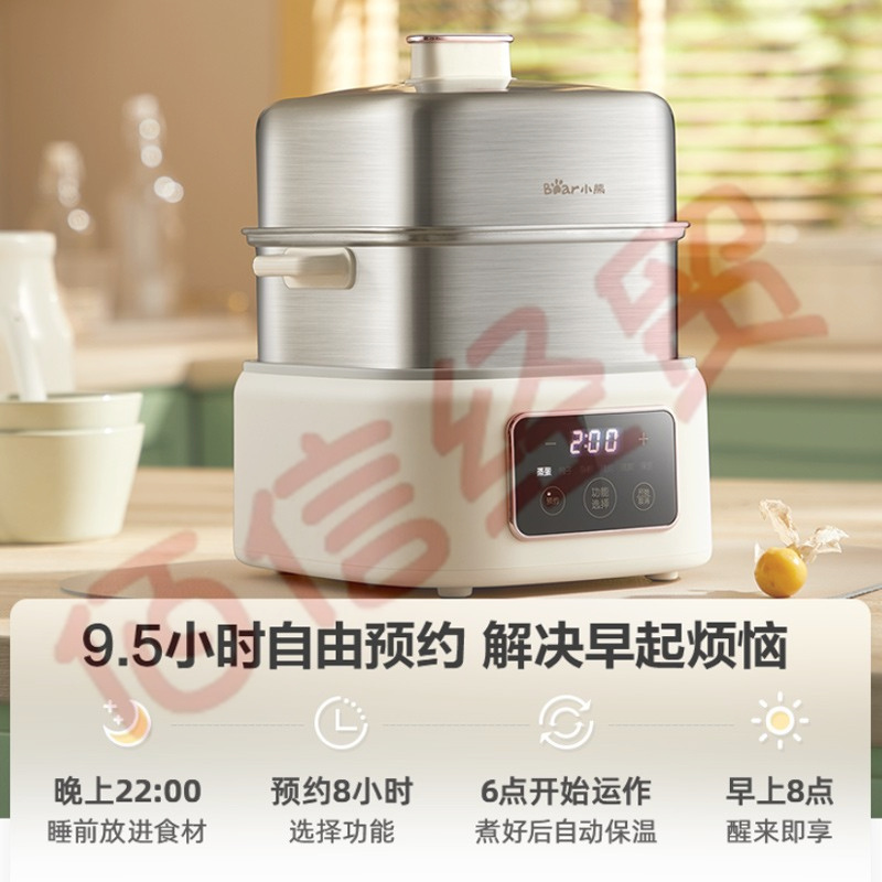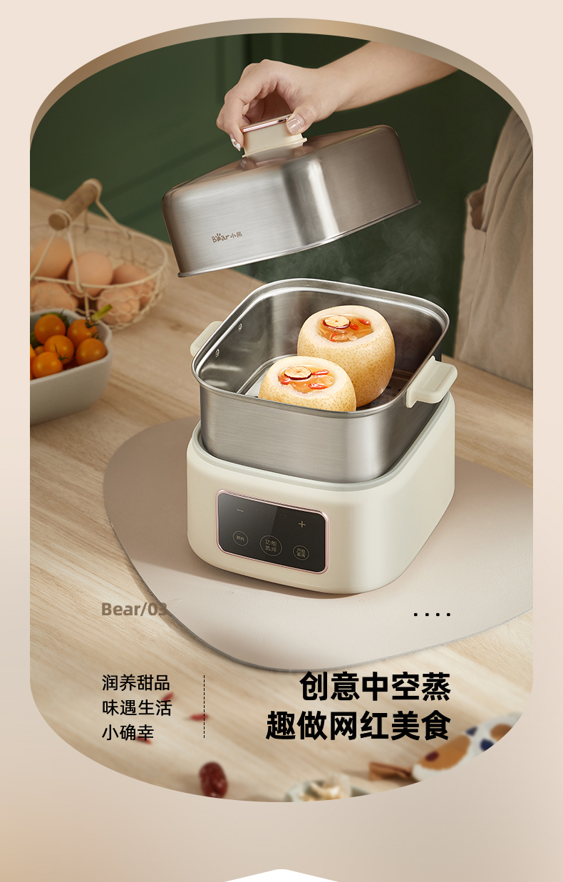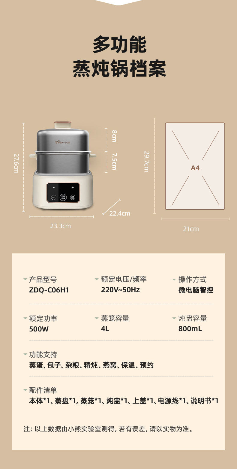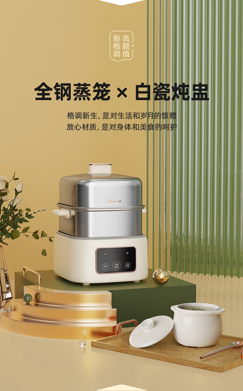 小熊(Bear) 電燉盅電燉鍋多用途電蒸鍋蒸蛋器煲湯鍋燉湯鍋 白瓷燉盅隔水燉 雙層不銹鋼煮蛋器 ZDQ-C06H1 自營(yíng)