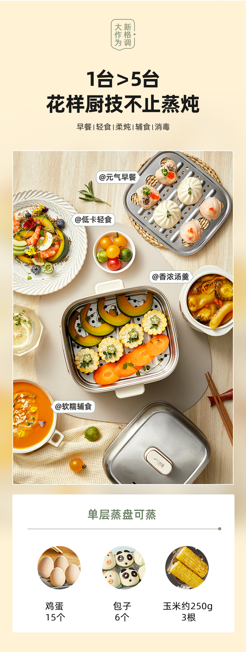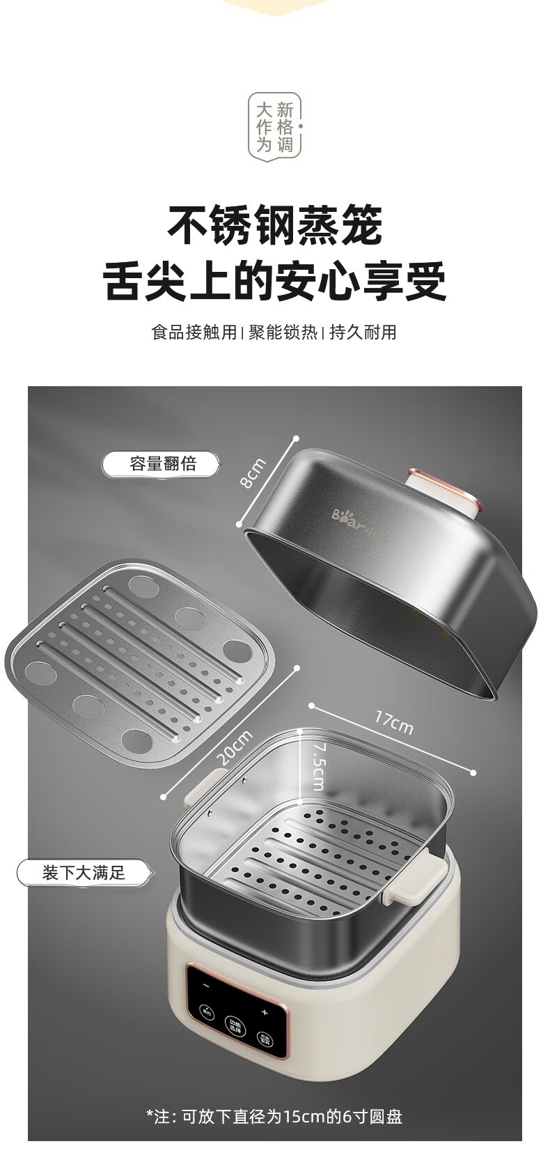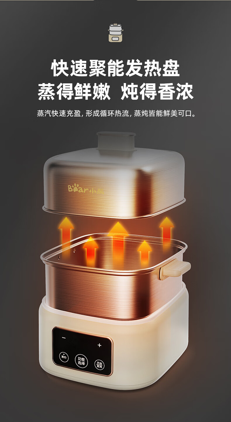 小熊(Bear) 電燉盅電燉鍋多用途電蒸鍋蒸蛋器煲湯鍋燉湯鍋 白瓷燉盅隔水燉 雙層不銹鋼煮蛋器 ZDQ-C06H1 自營(yíng)