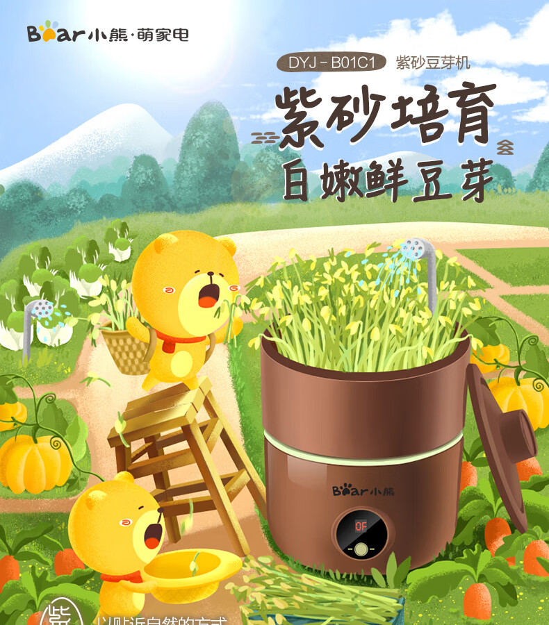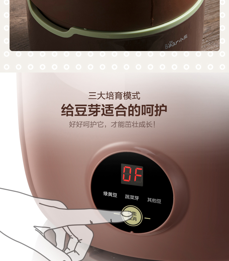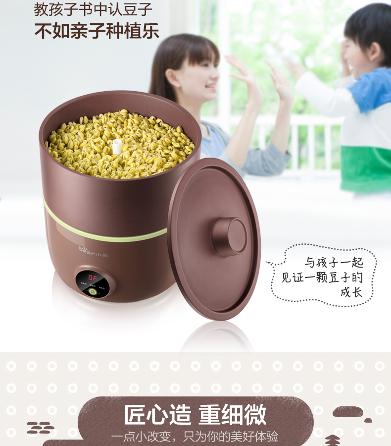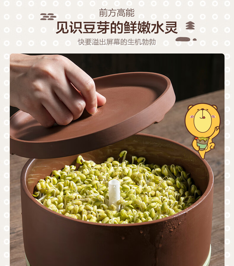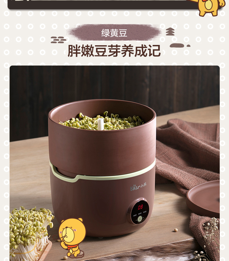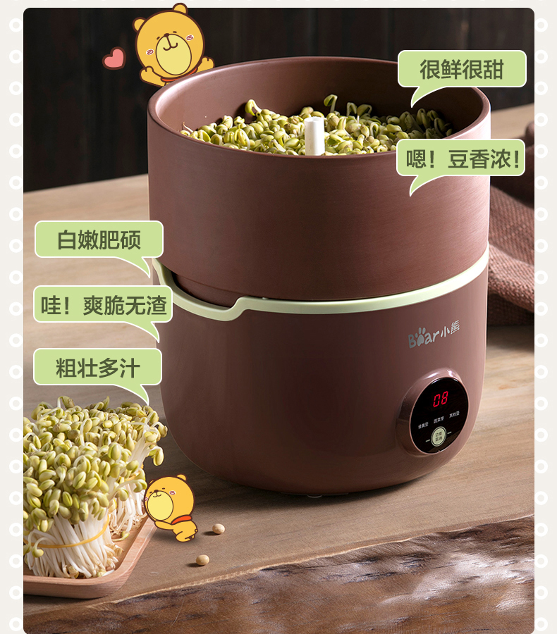 小熊(Bear) 豆芽機(jī)紫砂陶瓷罐紅豆綠豆黃豆豌豆蔬菜苗培育箱多功能家用全自動(dòng)微電腦全自動(dòng)斷電記憶 DYJ-B01C1褐色 自營