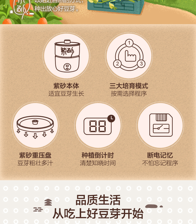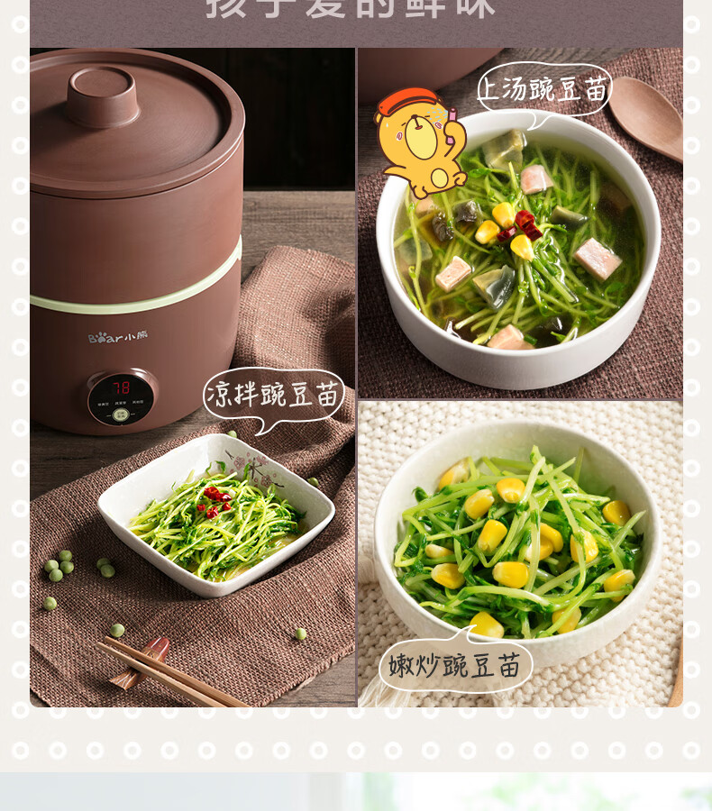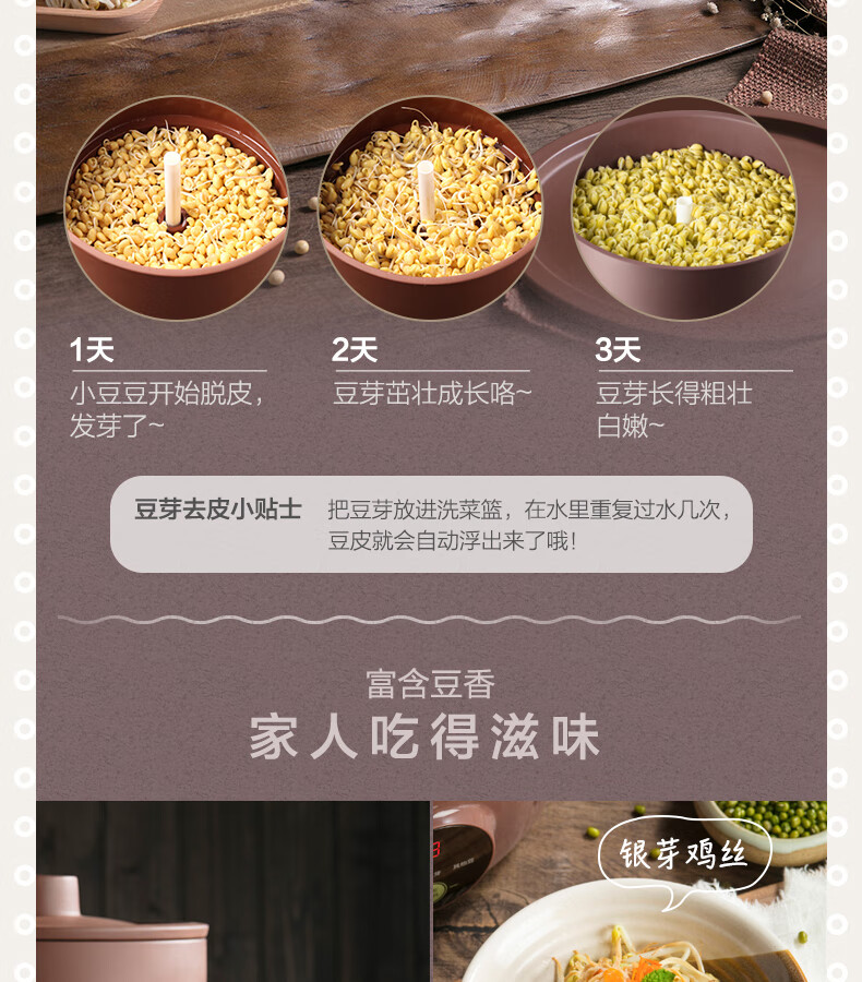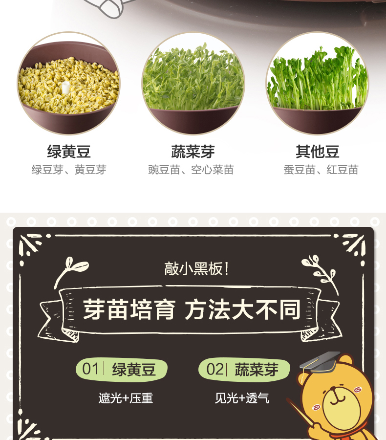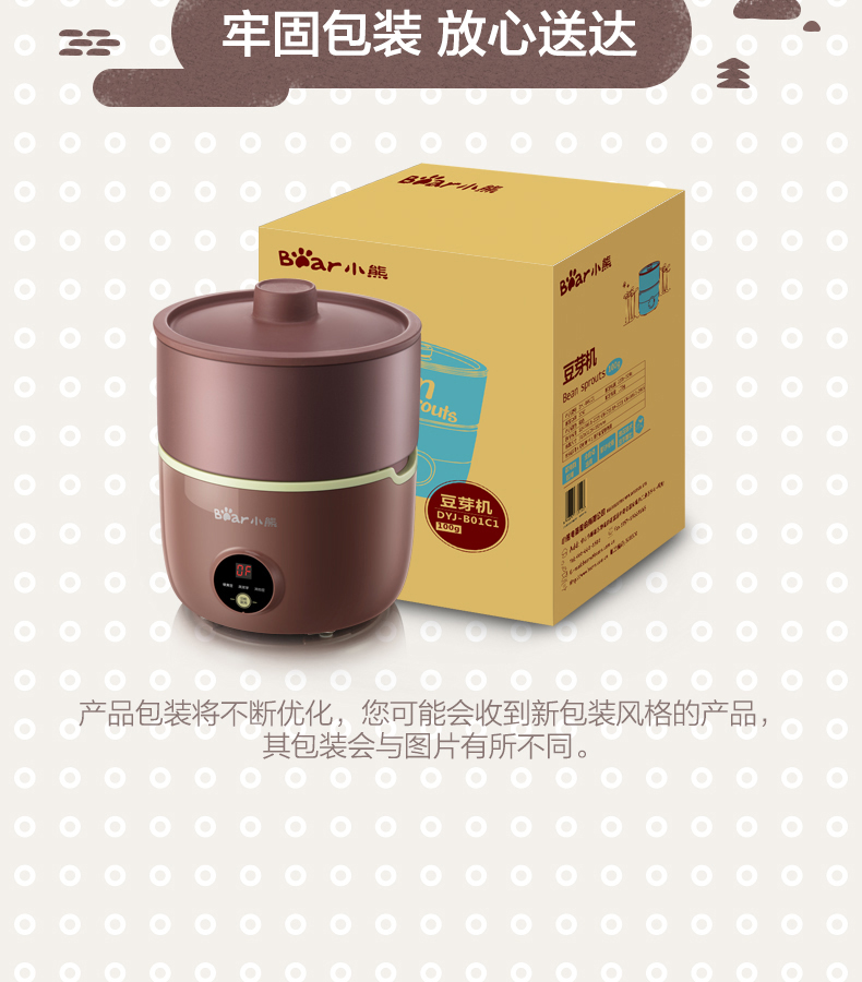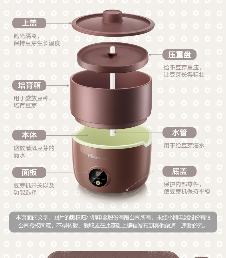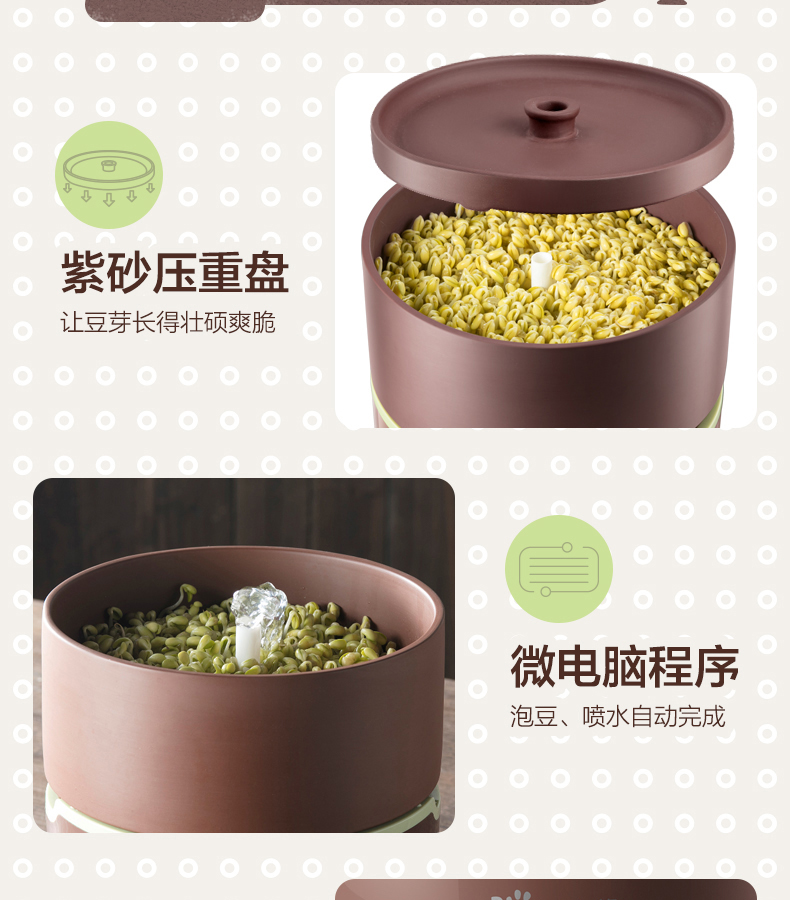 小熊(Bear) 豆芽機(jī)紫砂陶瓷罐紅豆綠豆黃豆豌豆蔬菜苗培育箱多功能家用全自動(dòng)微電腦全自動(dòng)斷電記憶 DYJ-B01C1褐色 自營