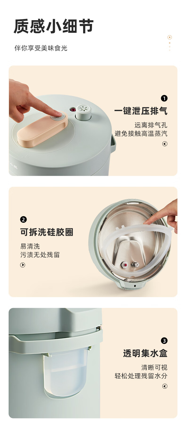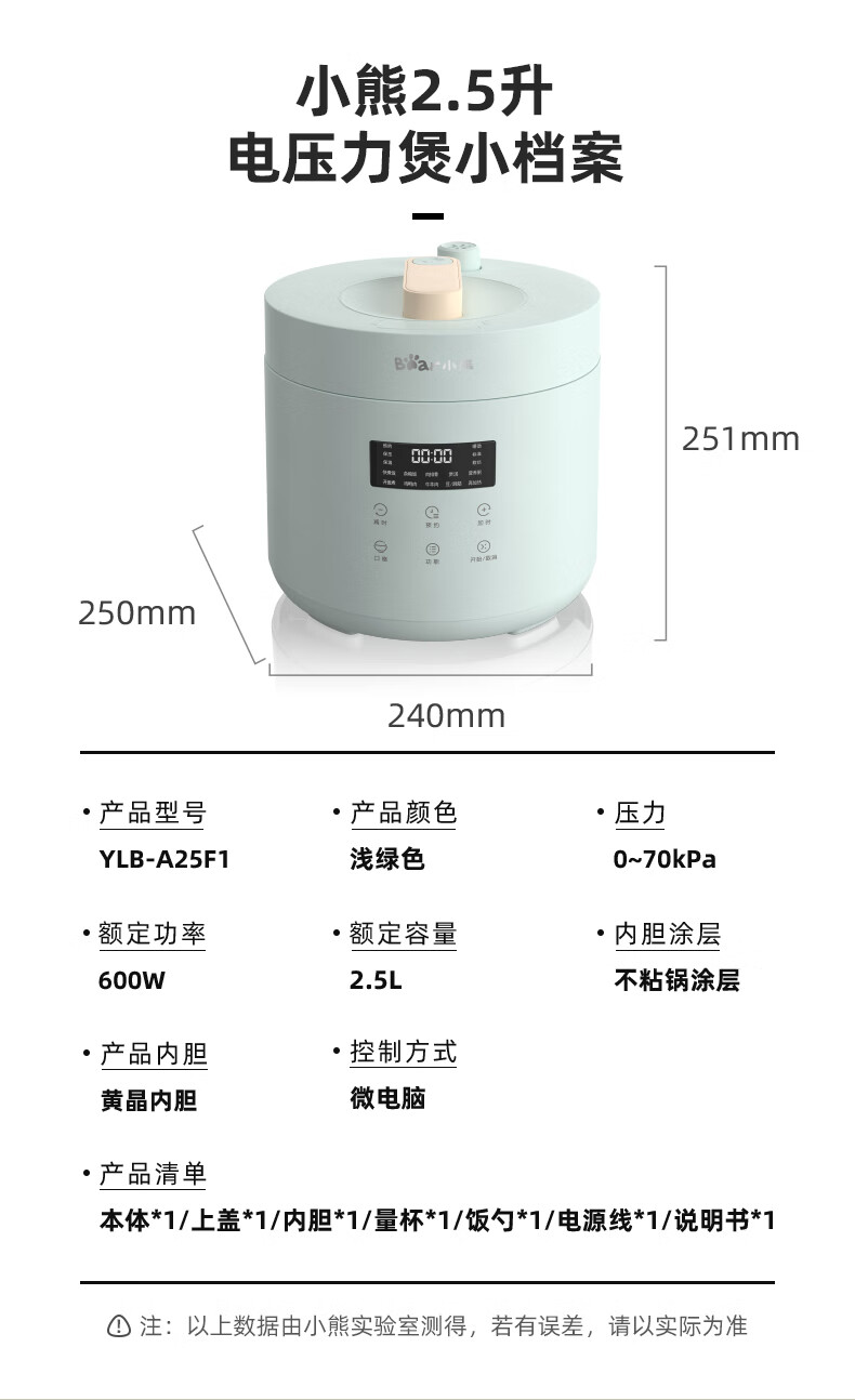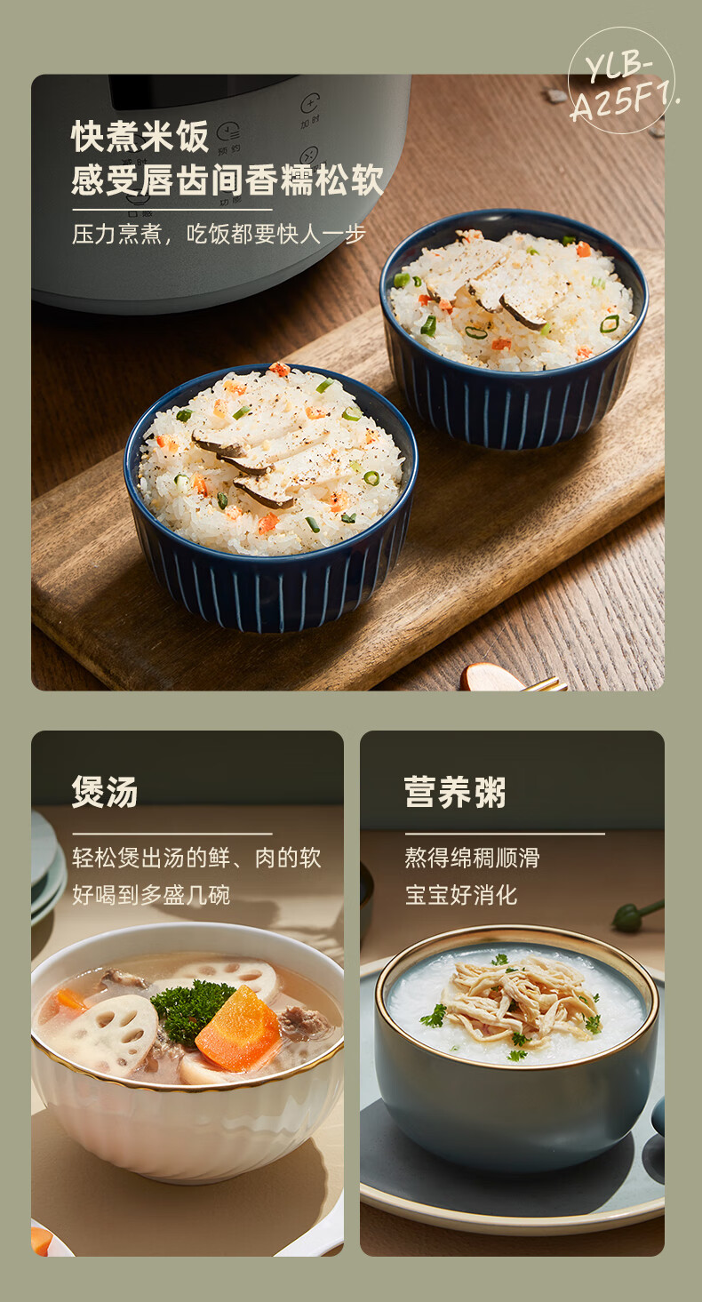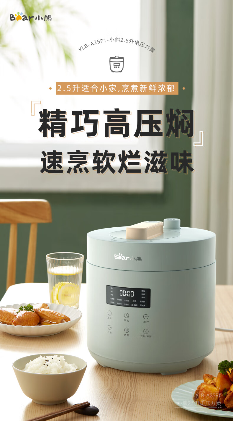 小熊(Bear)電壓力鍋小型煮飯燉肉煲湯高壓鍋多功能智能預(yù)約電飯煲2.5升壓力煲小容量電壓鍋 YLB-A25F1 自營