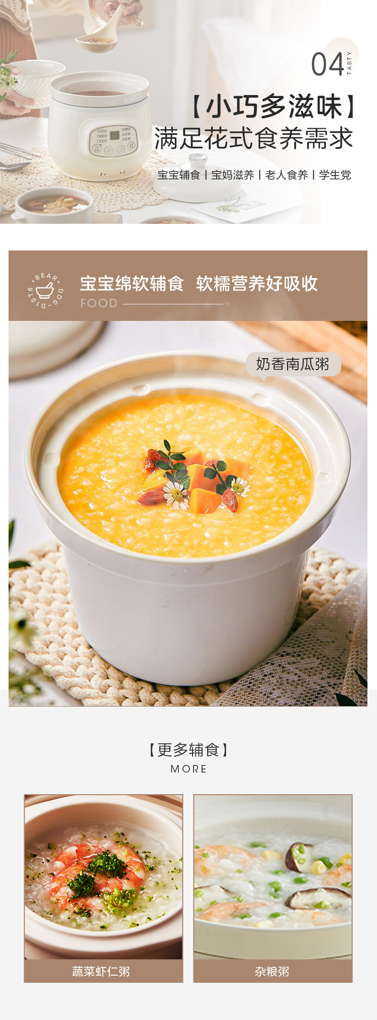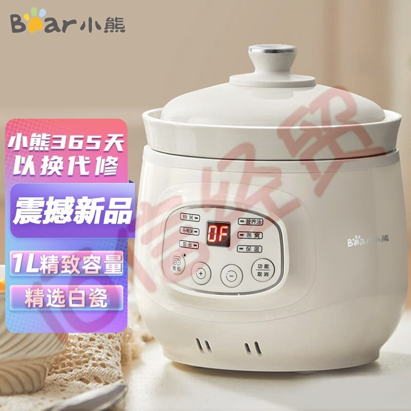 小熊(Bear)電燉鍋 電燉盅 煲湯鍋燉湯鍋 電砂鍋陶瓷煮粥鍋熬粥燕窩養(yǎng)生 DDG-D10T6 【1L白瓷直燉鍋】2人用 自營