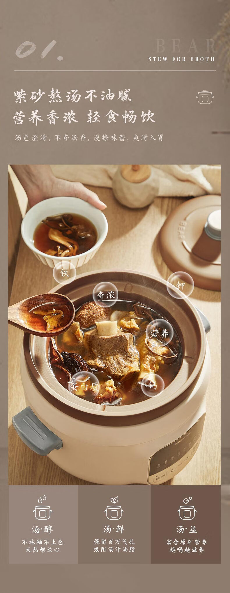 小熊(Bear) 電燉鍋 煲湯鍋 燉湯鍋 電砂鍋 紫砂鍋 煮粥鍋煲粥熬粥養(yǎng)生神器 可預(yù)約定時(shí) 【3L原礦紫砂】DDG-D30L3 自營(yíng)