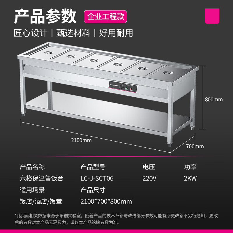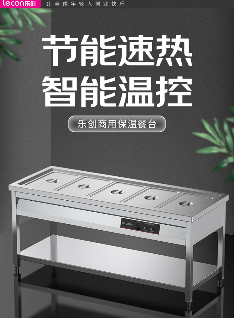 樂(lè)創(chuàng)(lecon)商用保溫售飯臺(tái) 6格不銹鋼快餐保溫臺(tái)食堂售飯臺(tái) LC-J-SCT06【企業(yè)工程款】 自營(yíng)