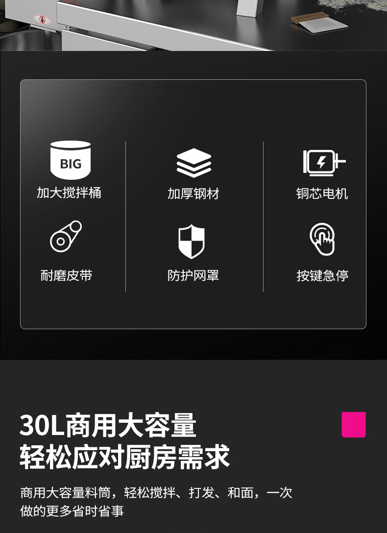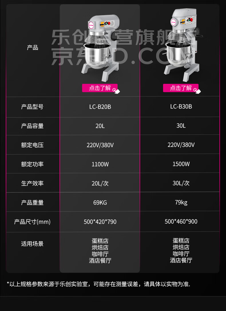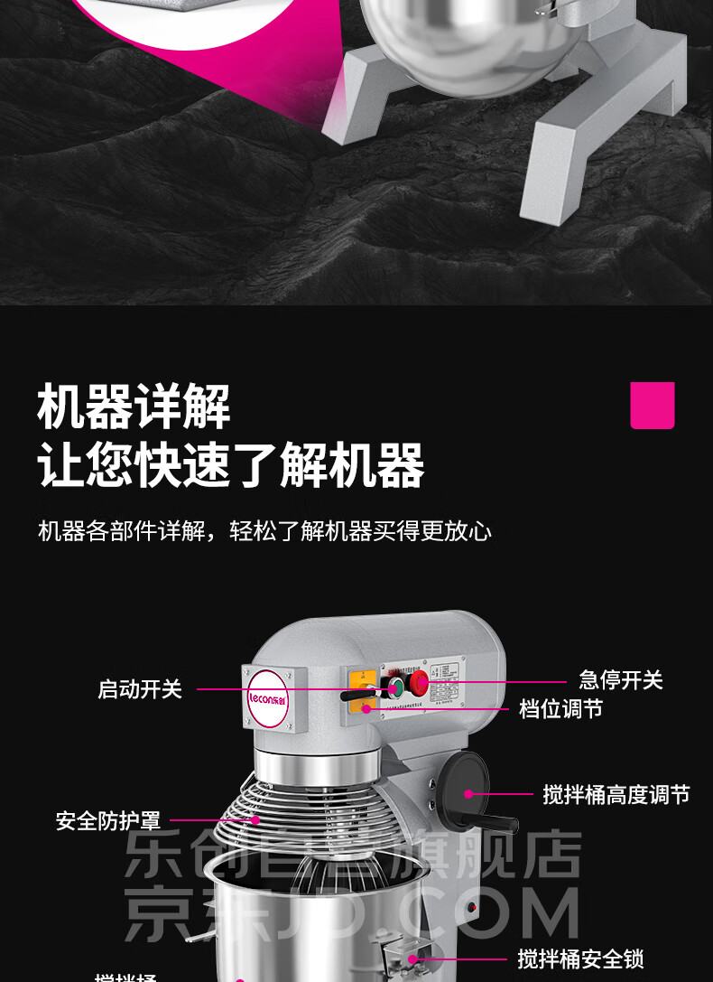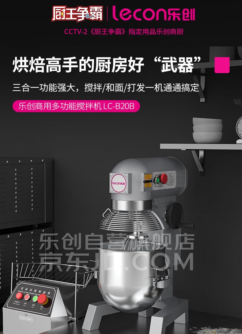 樂創(chuàng)(lecon)攪拌機商用打蛋器多功能廚師機和面機蛋糕面包打發(fā)打奶油30L(帶罩) LC-B30B 自營