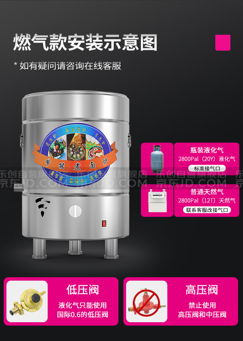 樂創(chuàng)(lecon)商用煮面爐燃氣煮面桶不銹鋼湯桶煮粥爐早餐店食堂湯粉爐-LC-ZML40 自營