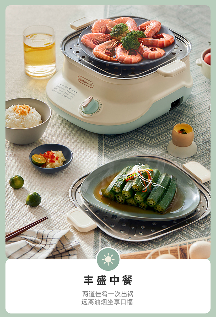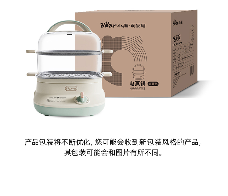 小熊(Bear)電蒸鍋 蒸蛋器 蒸鍋家用 電蒸籠 多功能早餐包子分體式帶不銹鋼蒸盤(pán)DZG-C60W9 6L 自營(yíng)