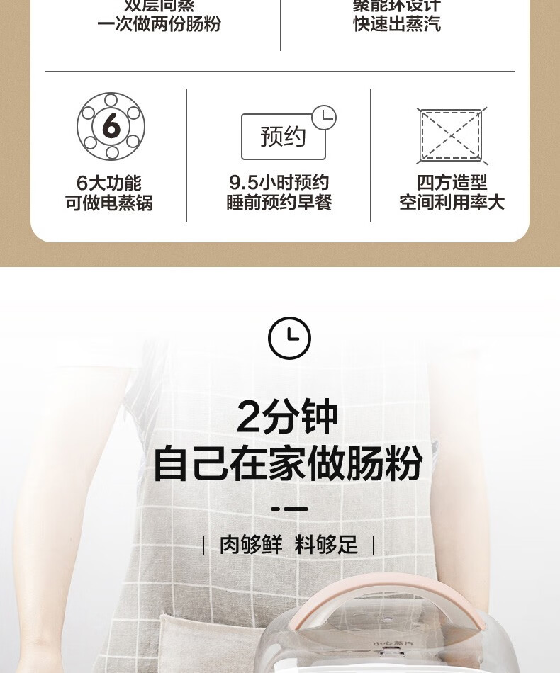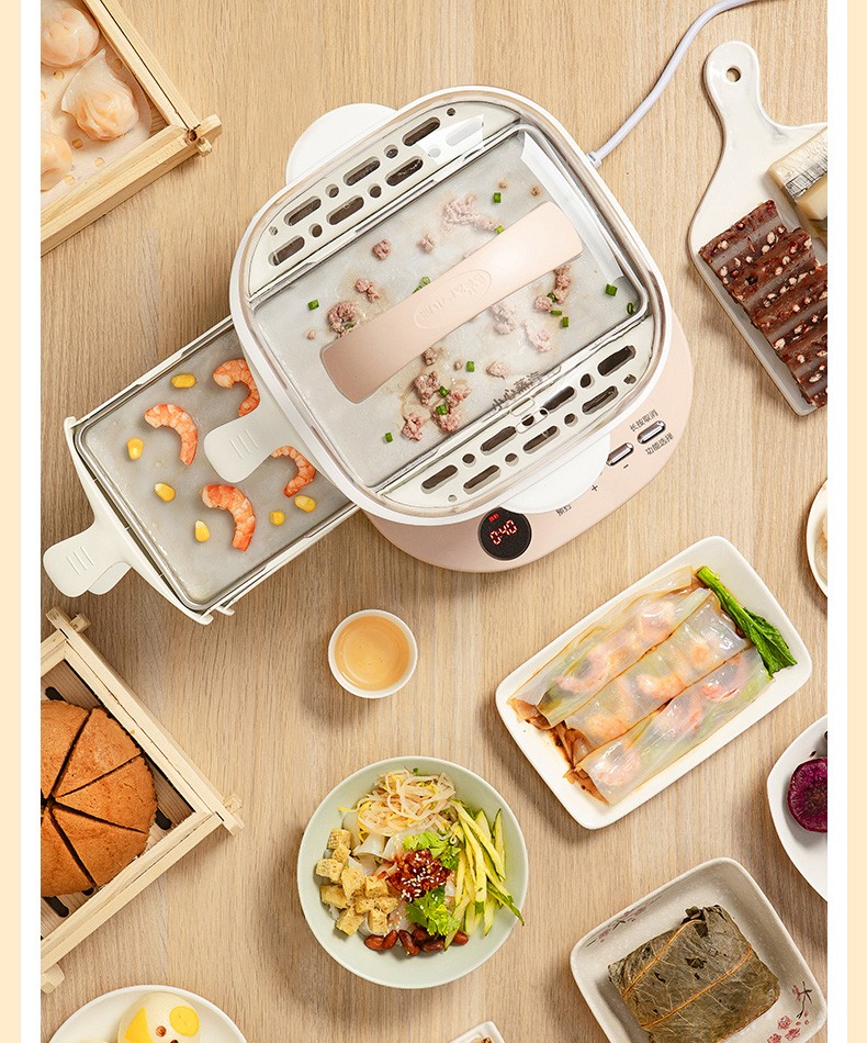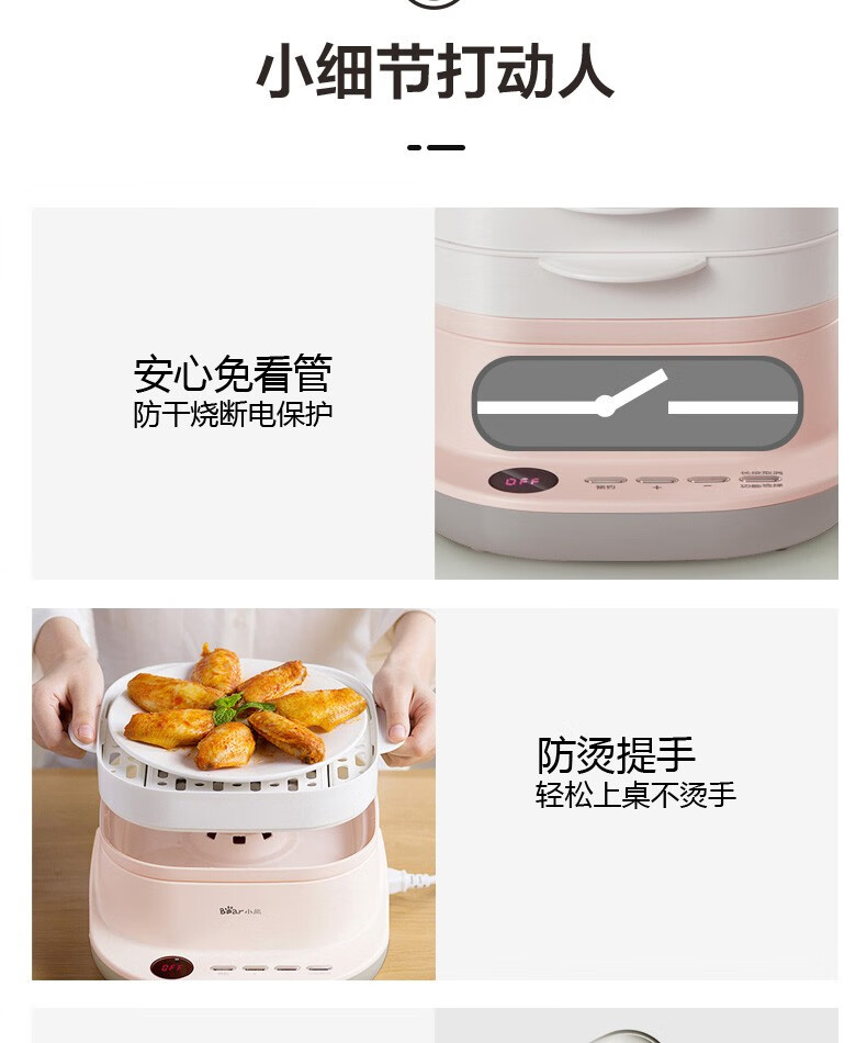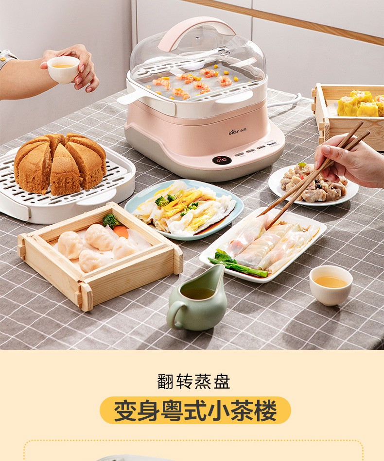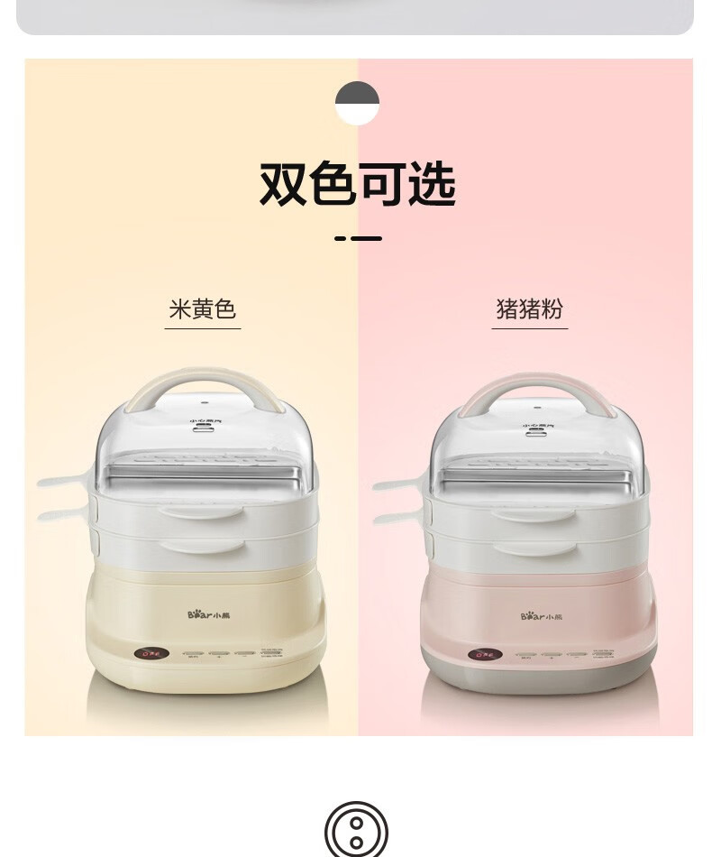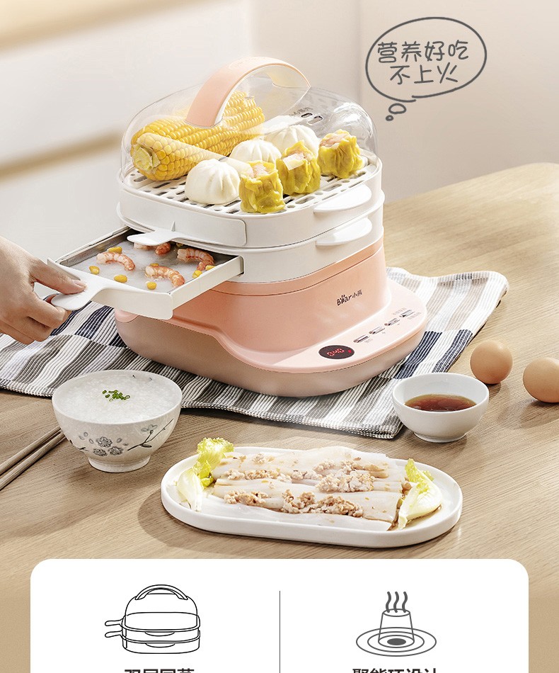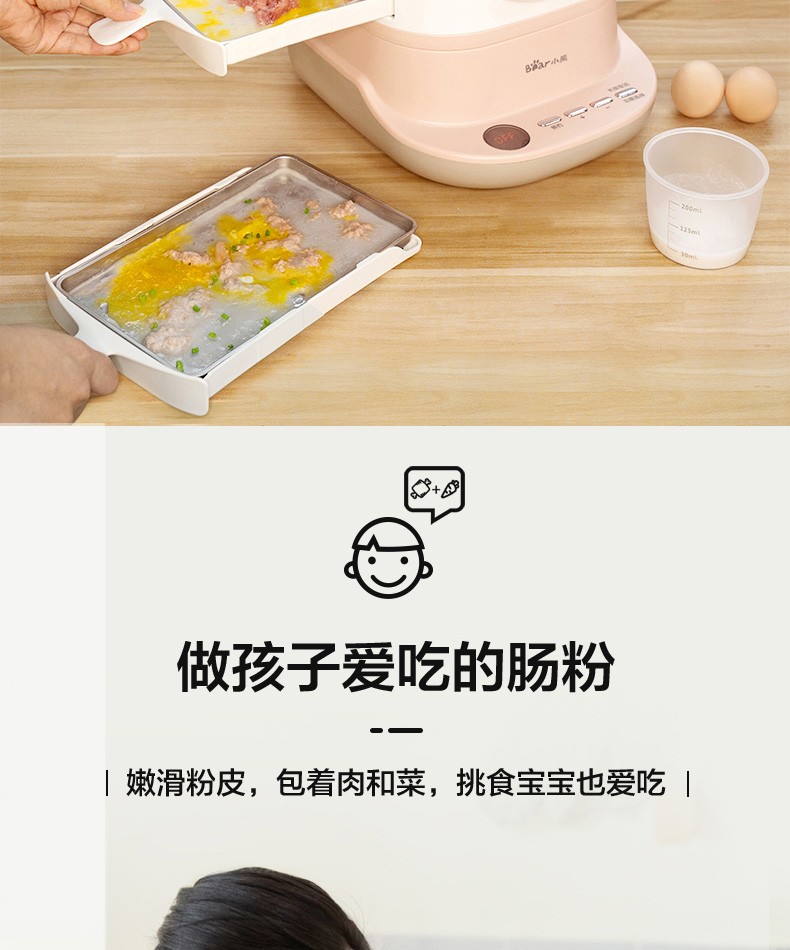 小熊(Bear)腸粉機(jī)電蒸鍋電鍋抽屜式拉腸粉專用蒸盤3L多功能電蒸鍋早餐機(jī)CFJ-A30Q3 腸粉機(jī)+電蒸鍋,粉色 自營