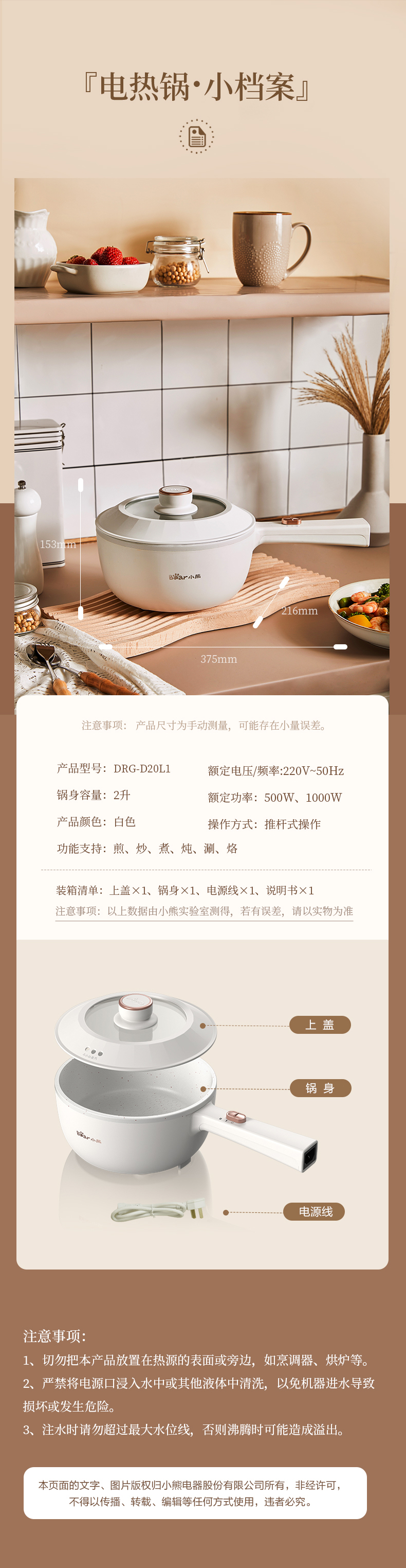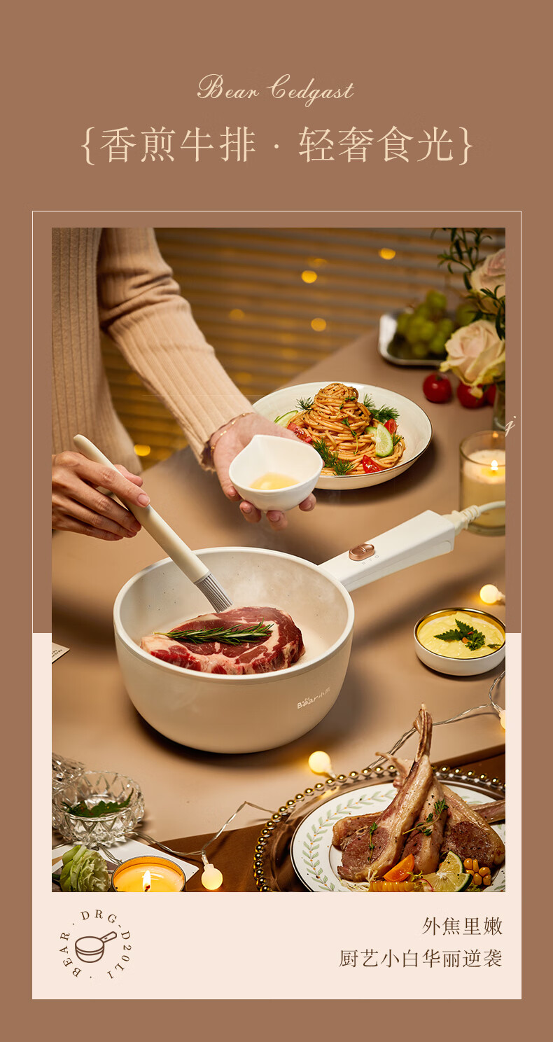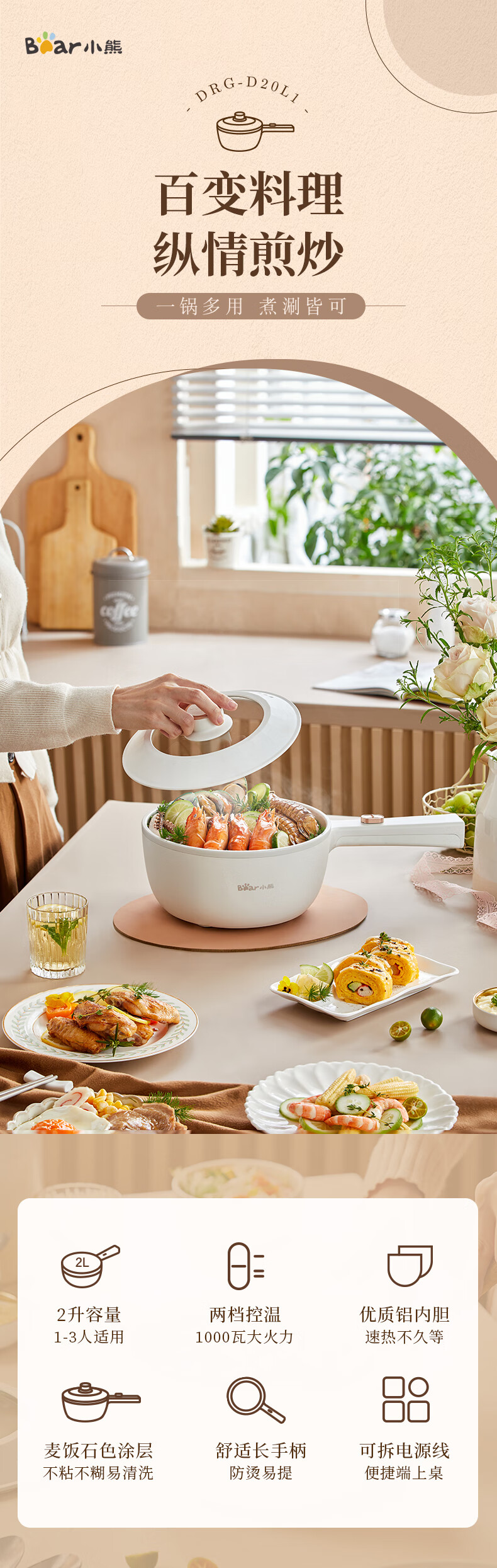 小熊(Bear)電煮鍋 多用途多功能電熱鍋 學(xué)生宿舍2L泡面火鍋小電鍋 蒸煮一體蒸屜電蒸鍋 DRG-D20L1【2L 容量】 自營