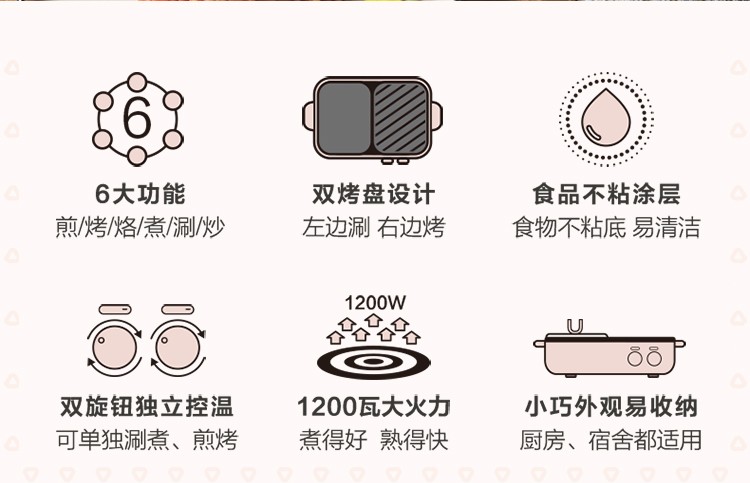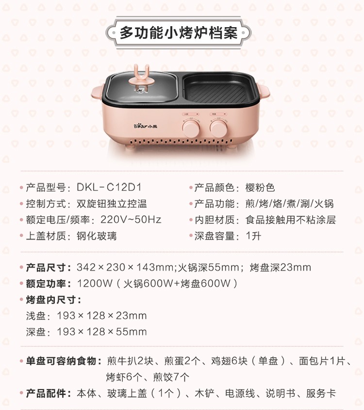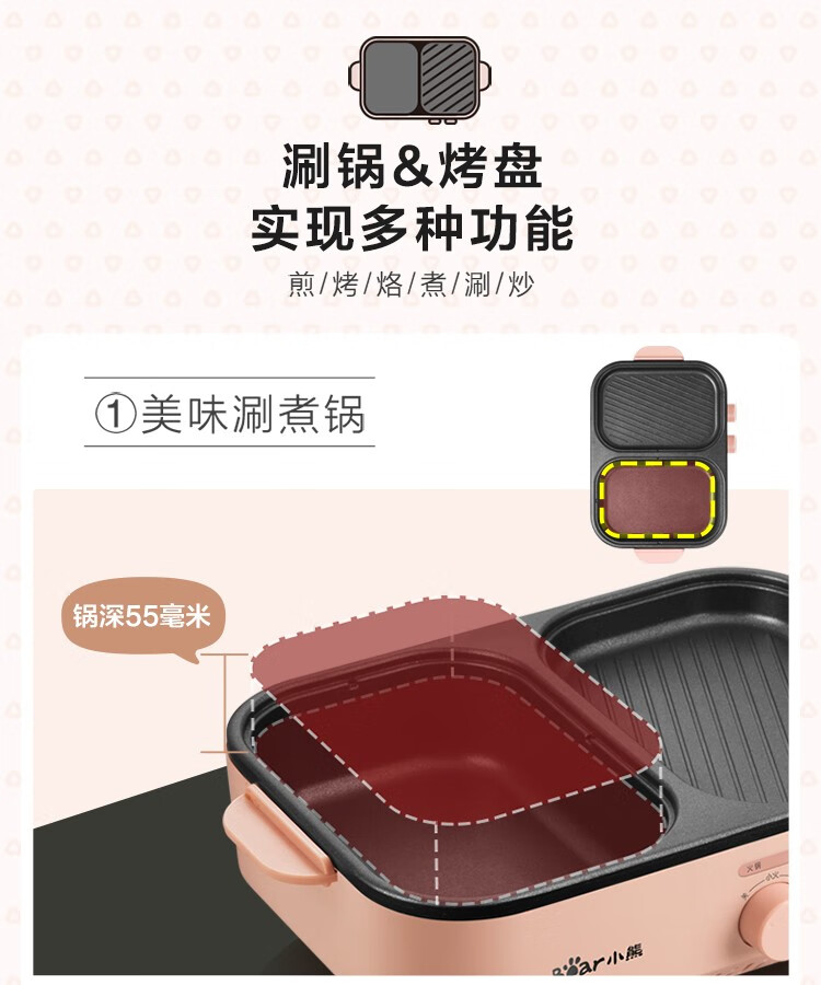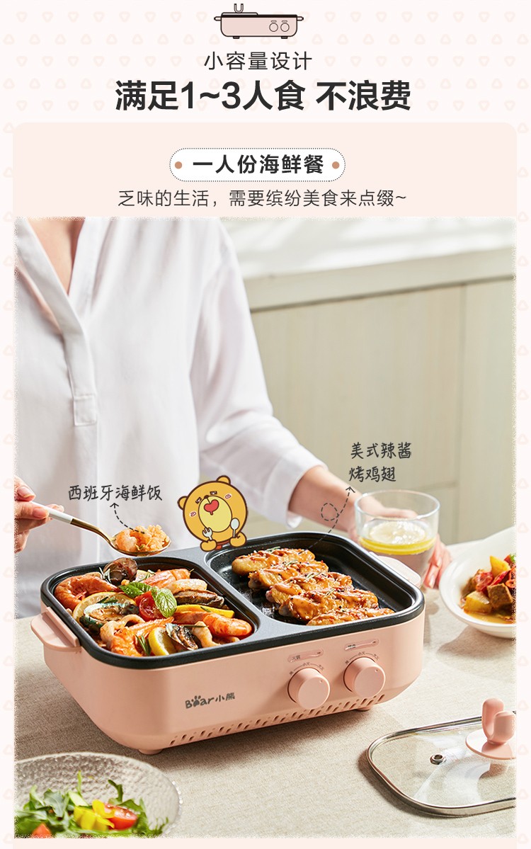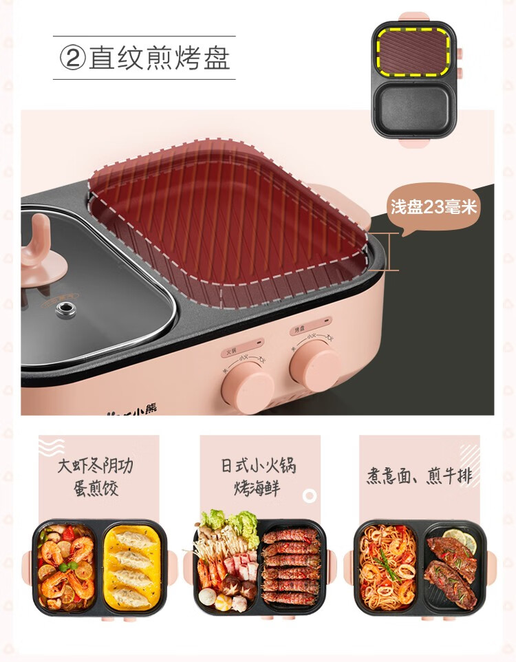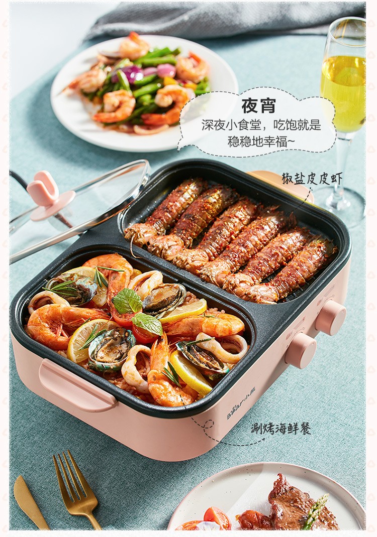 小熊(Bear) 多功能料理鍋 電烤爐烤肉鍋電火鍋兩用 電燒烤爐家用無煙韓式烤盤網紅煎涮烤一體電熱鍋 DKL-C12D1【左涮右烤/分區(qū)控溫】 自營