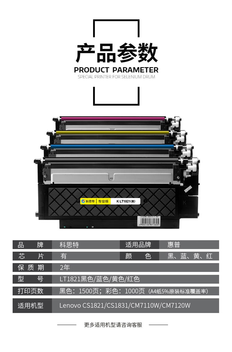 科思特 LT1821粉盒 適用聯(lián)想 CS1821/CS1831/CM7110W/CM7120W 四色套裝 專業(yè)版 自營