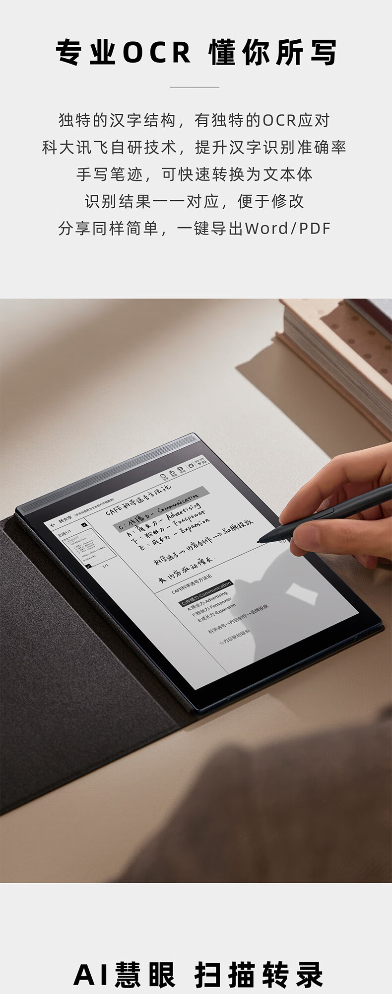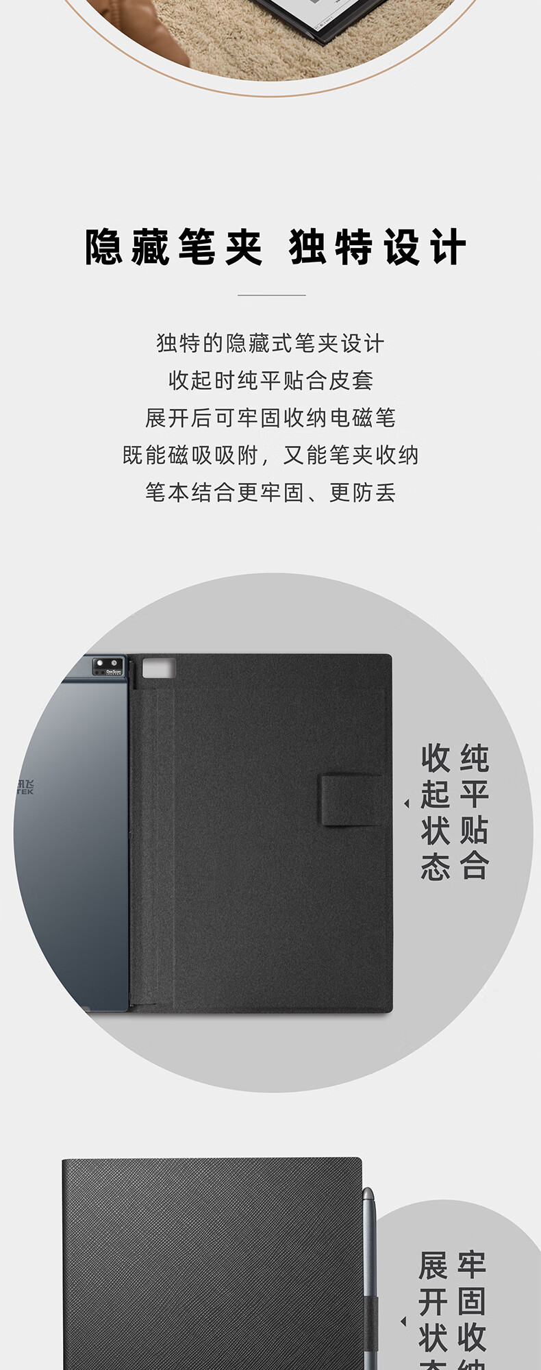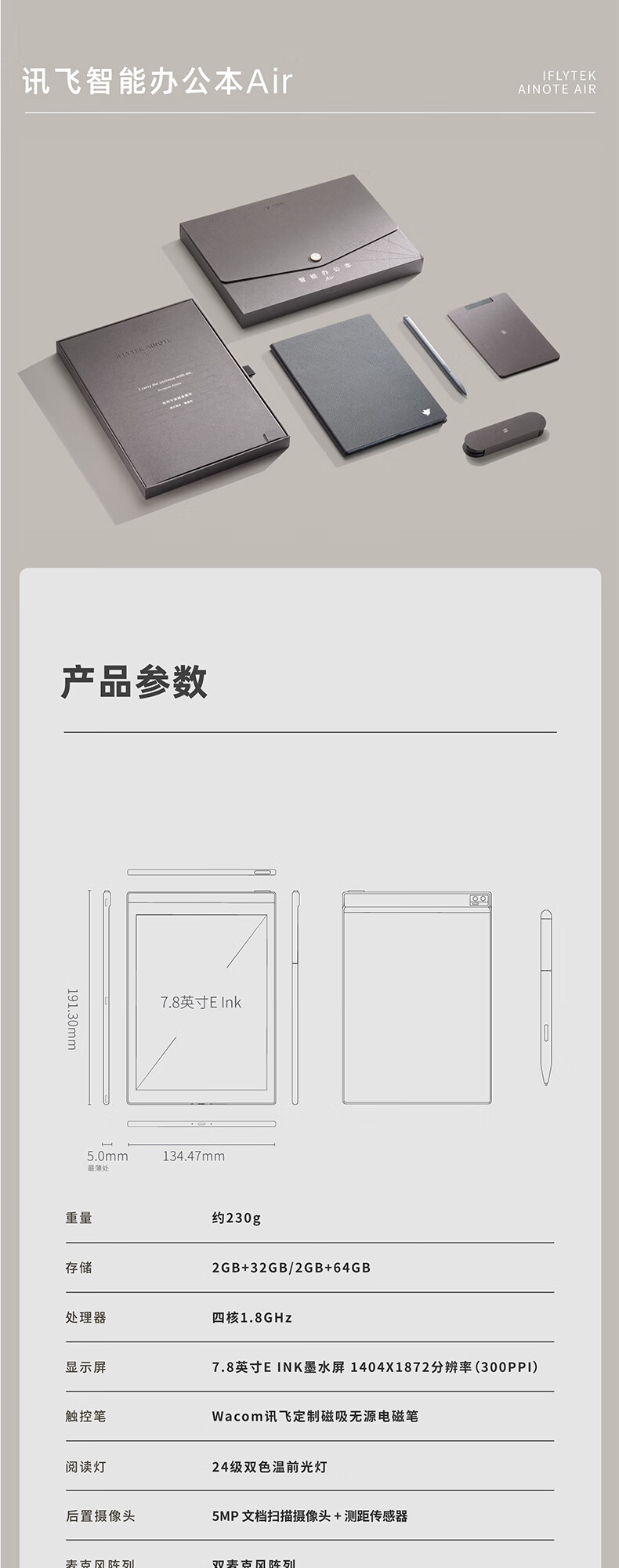 科大訊飛智能辦公本Air 7.8英寸電子書閱讀器 墨水屏電紙書 電子筆記本 語音轉(zhuǎn)文字 冷月銀+細(xì)格紋淺灰保護(hù)套 自營(yíng)