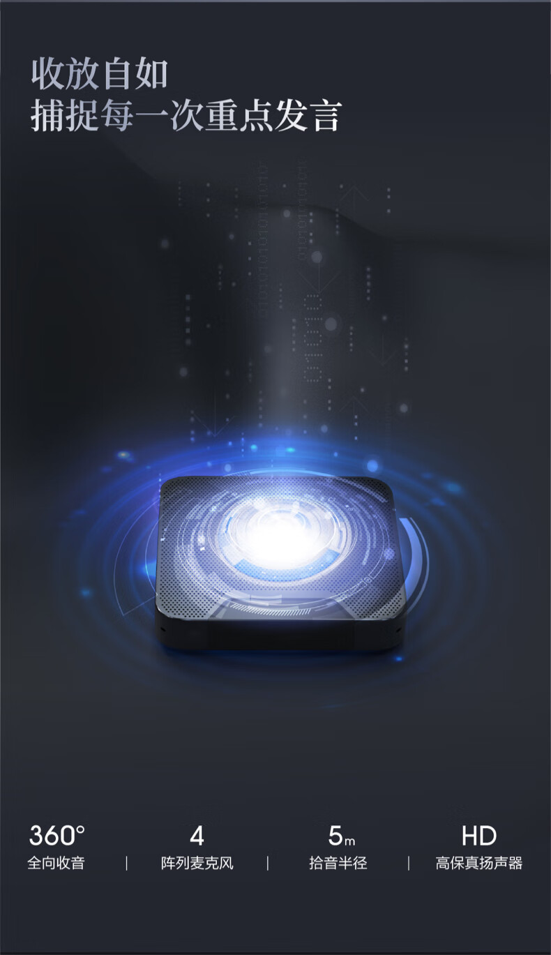 科大訊飛智能全向會議麥克風(fēng) 免驅(qū)藍(lán)牙桌面揚(yáng)聲器視頻會議音頻辦公設(shè)備 會議錄音翻譯轉(zhuǎn)文字 M2 自營