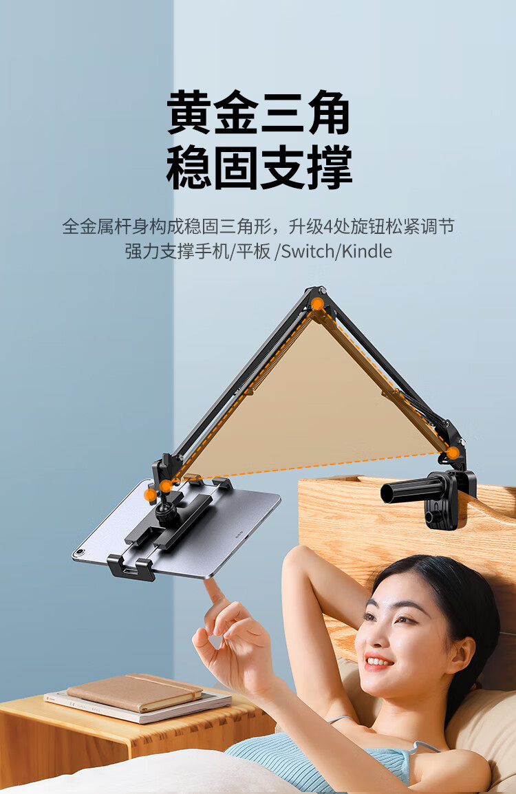 綠聯(lián) 手機(jī)支架 平板支架ipad網(wǎng)課床頭懶人 床上懸臂桌面俯拍支撐架直播架設(shè)備Switch通用【4-12.9英寸設(shè)備】 自營(yíng)