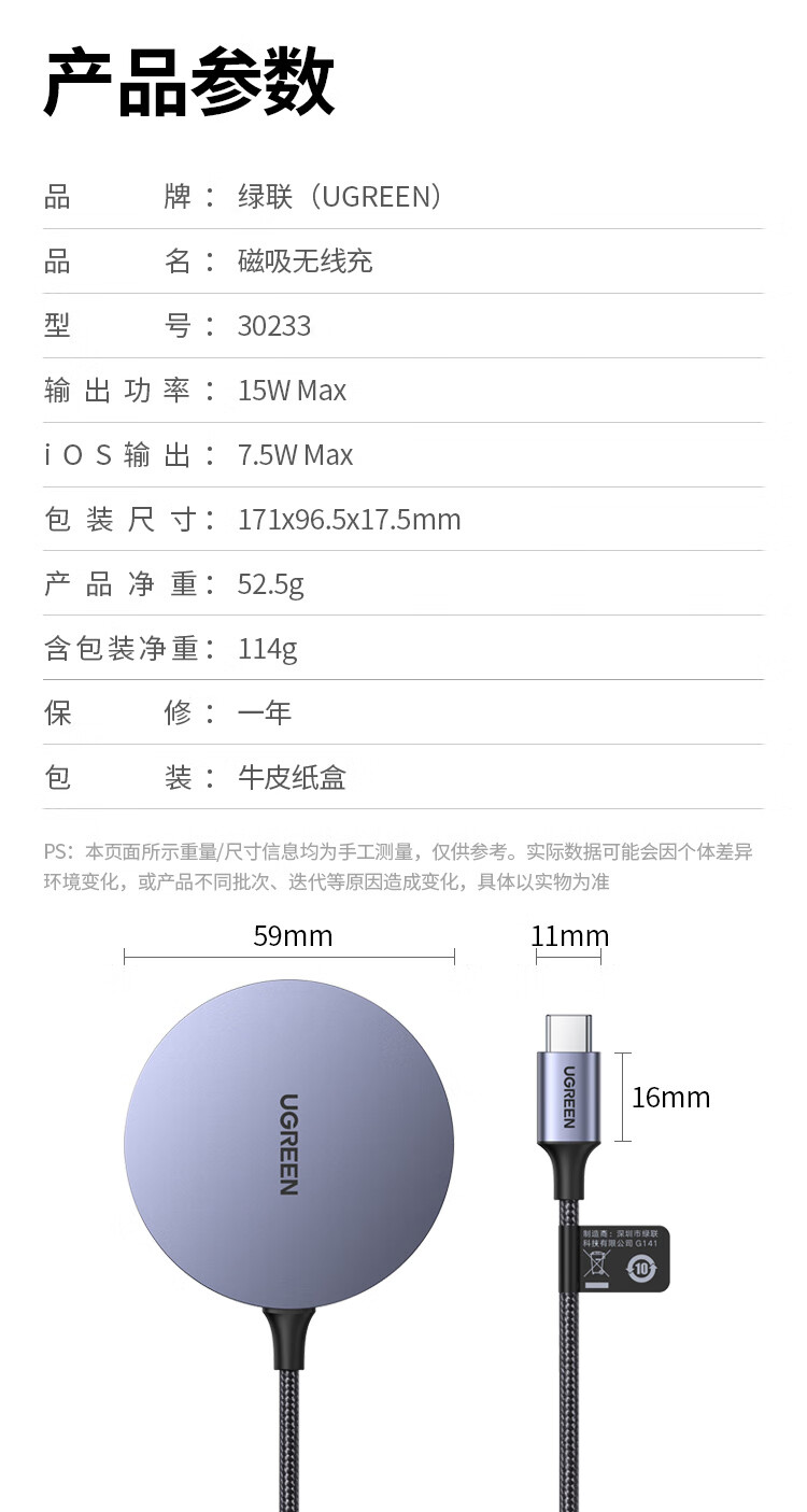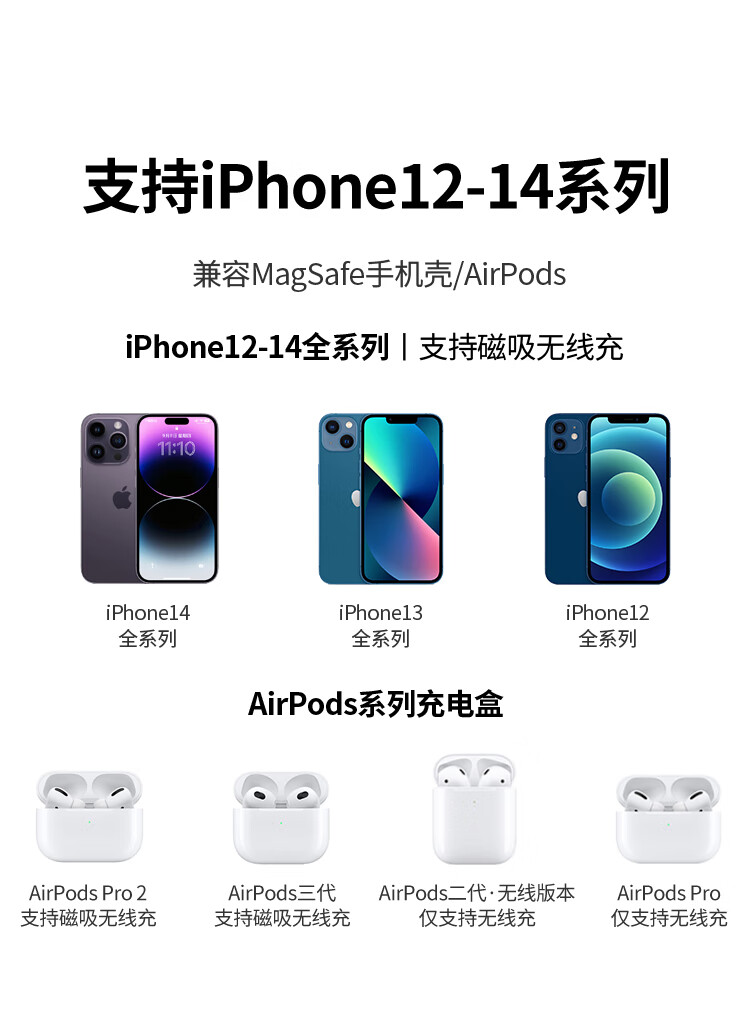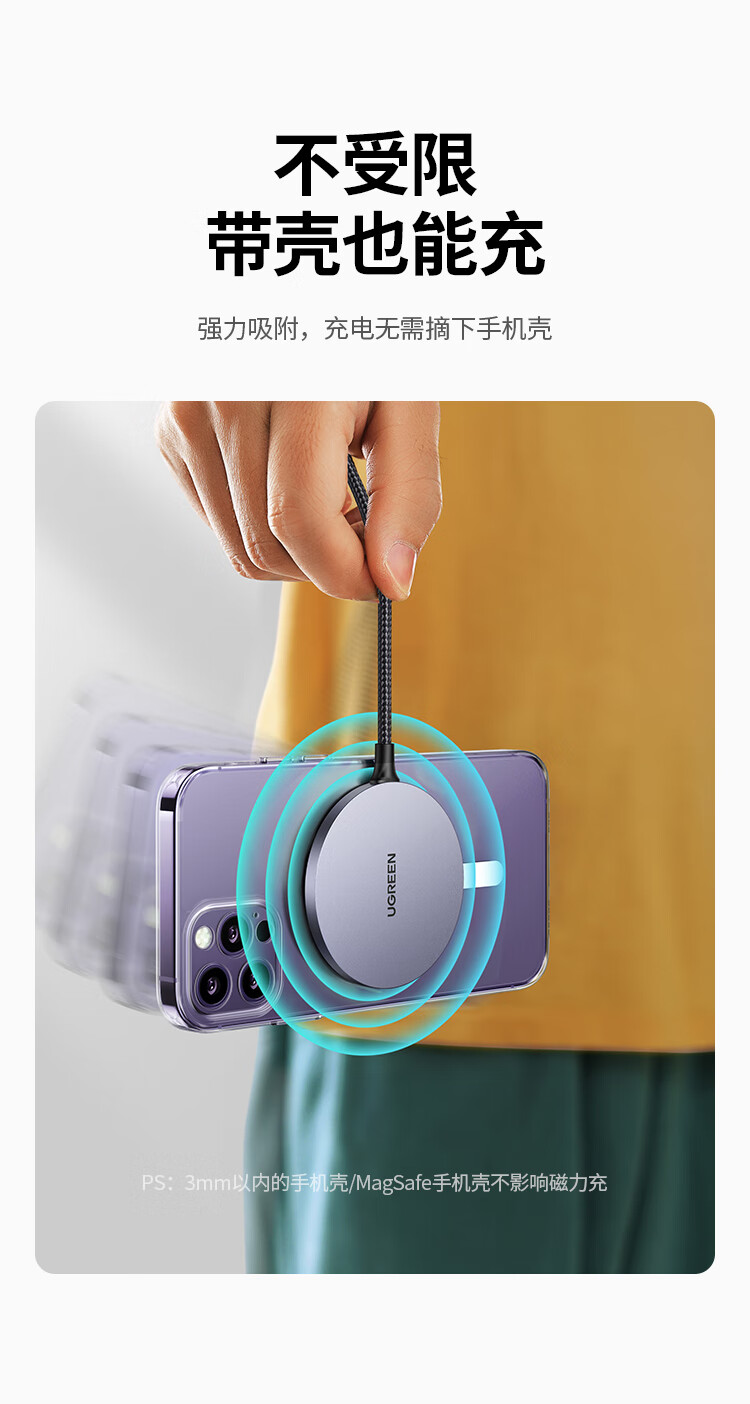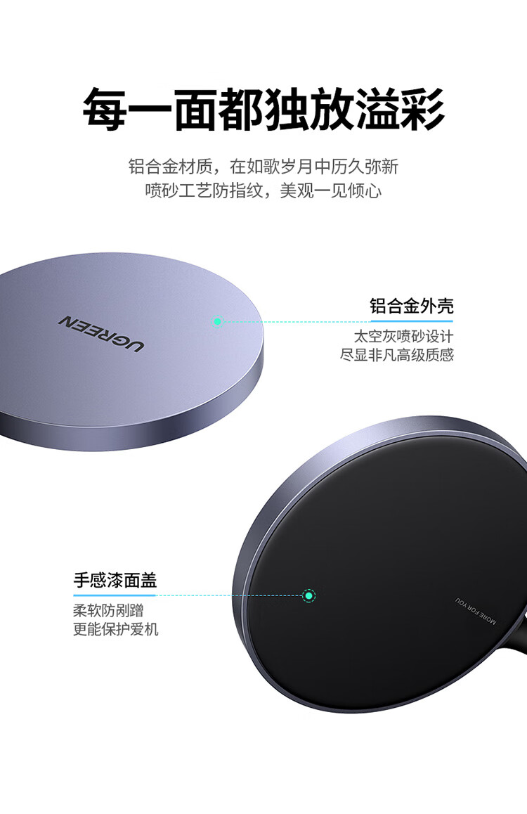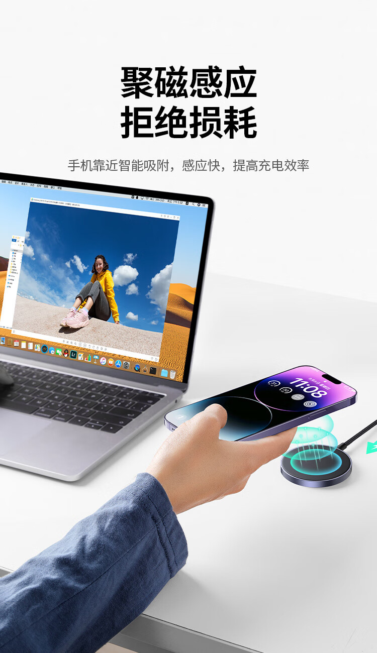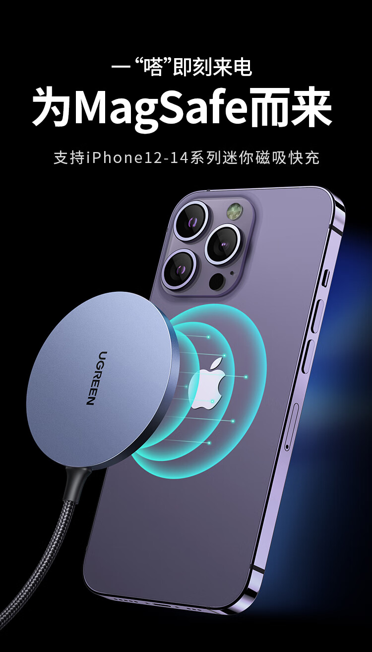 綠聯(lián) 蘋果無(wú)線充電器 蘋果14Plus支持Magsafe磁吸快充 適用iPhone13ProMax/12華為手機(jī)充電板底座AirPods耳機(jī) 自營(yíng)