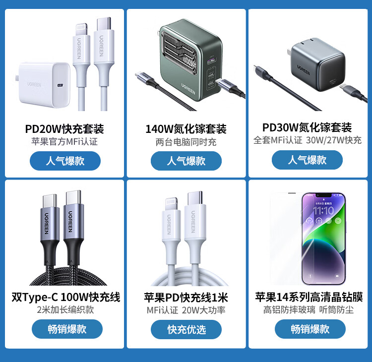 綠聯(lián) 閃電湃140W氮化鎵充電器GaN套裝 PD快充頭多口通用Macbook蘋果14/13Type-C華為手機(jī)筆記本配240W數(shù)據(jù)線 自營(yíng)