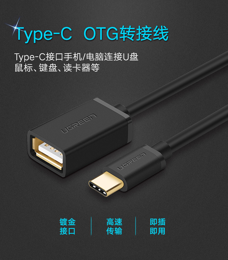綠聯(lián) Type-C轉(zhuǎn)USB2.0轉(zhuǎn)接頭 OTG數(shù)據(jù)線USB-C轉(zhuǎn)換器通用小米榮耀華為手機(jī)安卓蘋果MacBook筆記本電腦平板接U盤 自營(yíng)