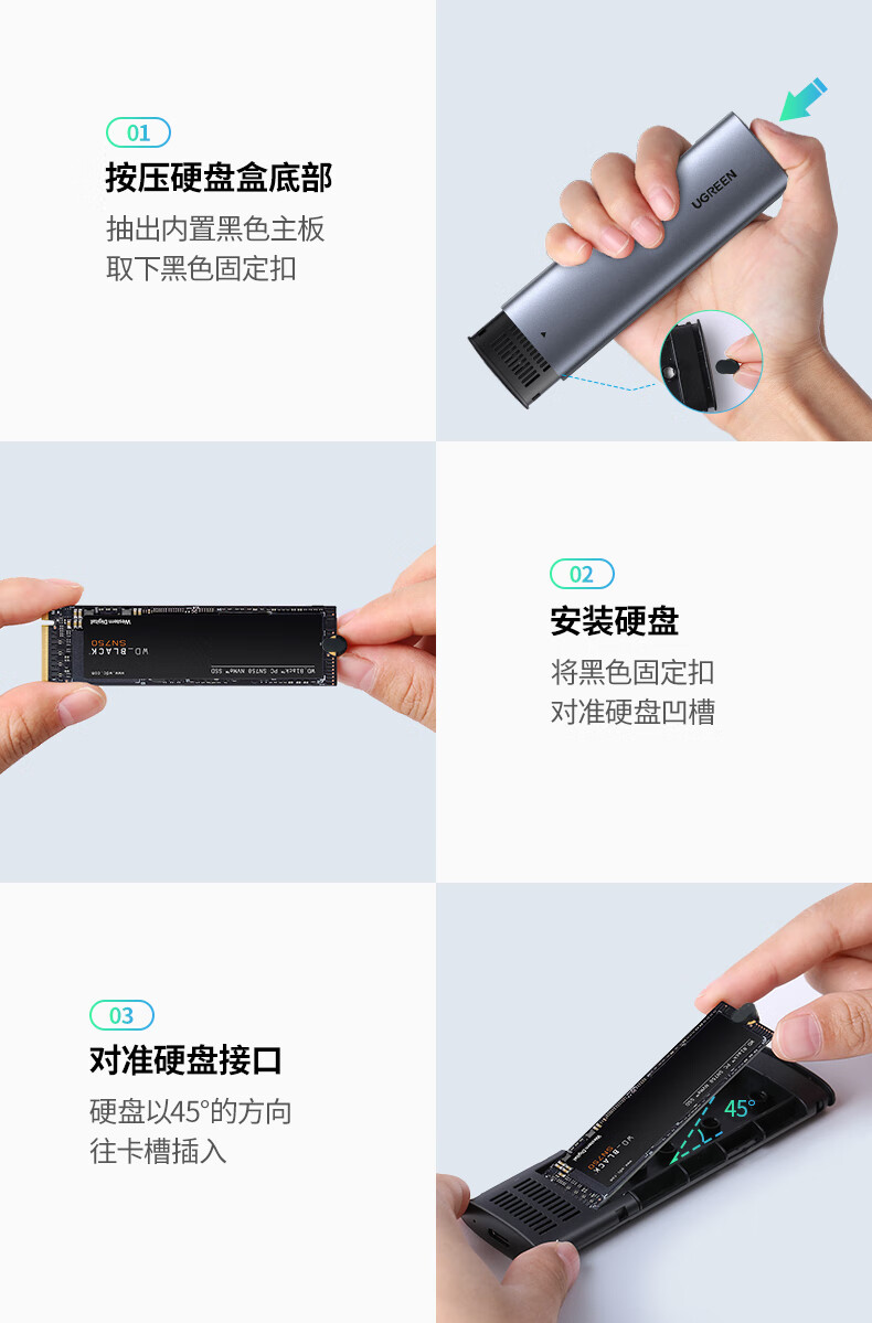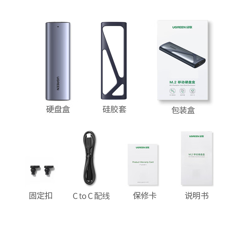 綠聯(lián) M.2 NVMe移動硬盤盒 Type-C3.2接口SSD固態(tài)硬盤盒子筆記本電腦M2全鋁外置盒 自營