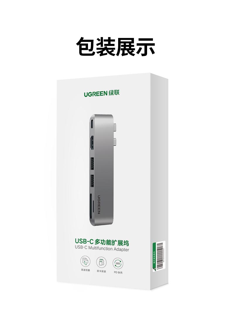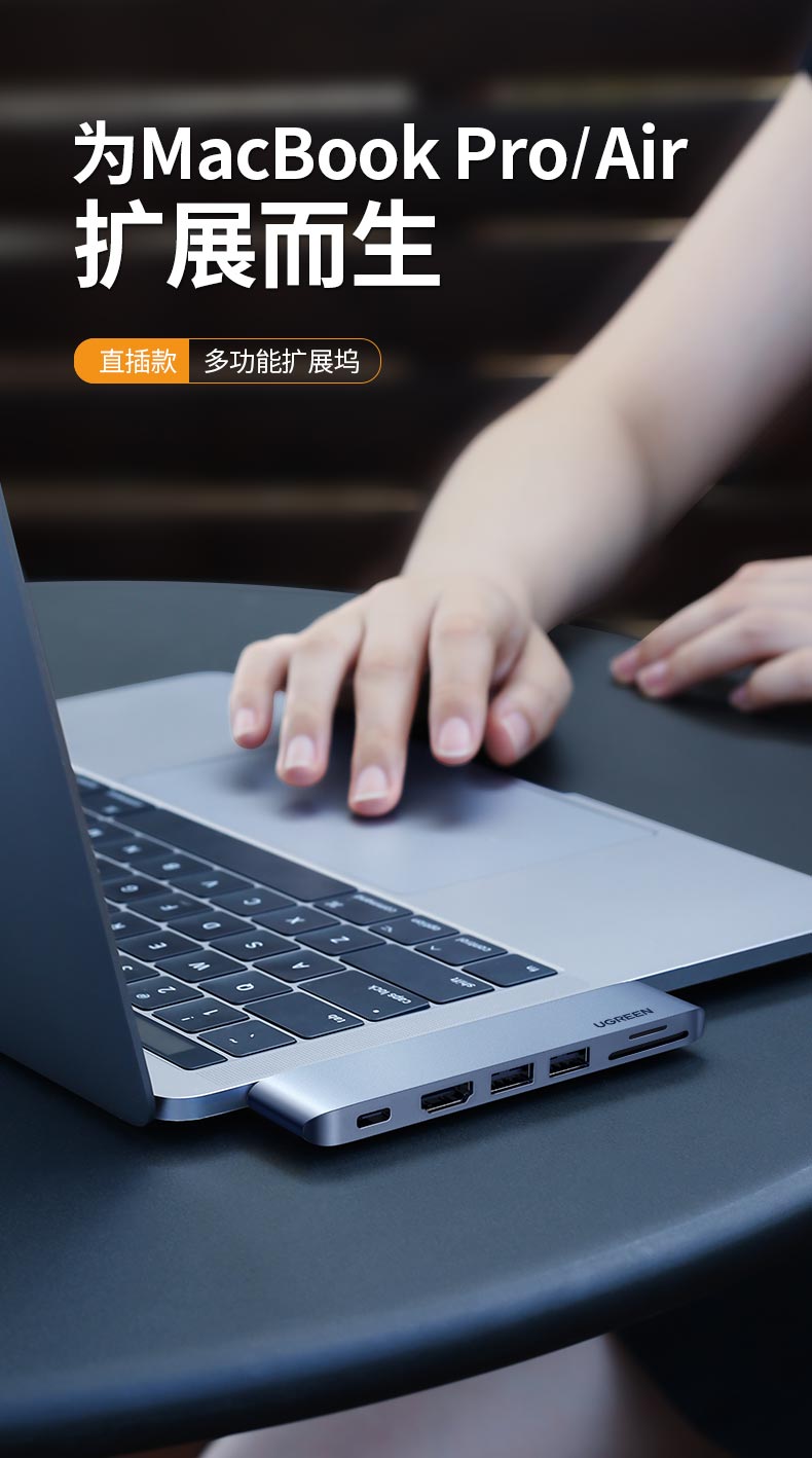 綠聯(lián)Type-C擴(kuò)展塢蘋果直插式拓展塢MacBookPro/Air筆記本通用M1/2芯片雷電3HDMI轉(zhuǎn)換器SD/TF讀卡USB3.0六合一 自營