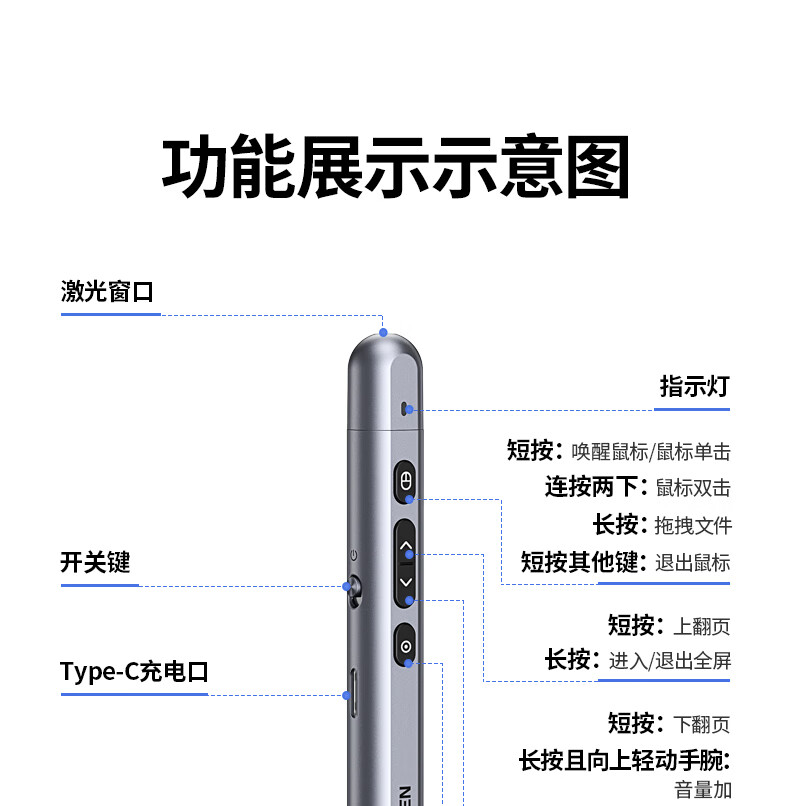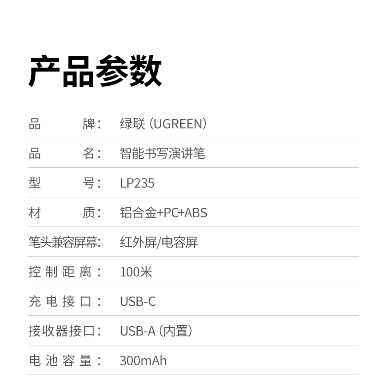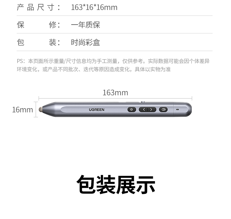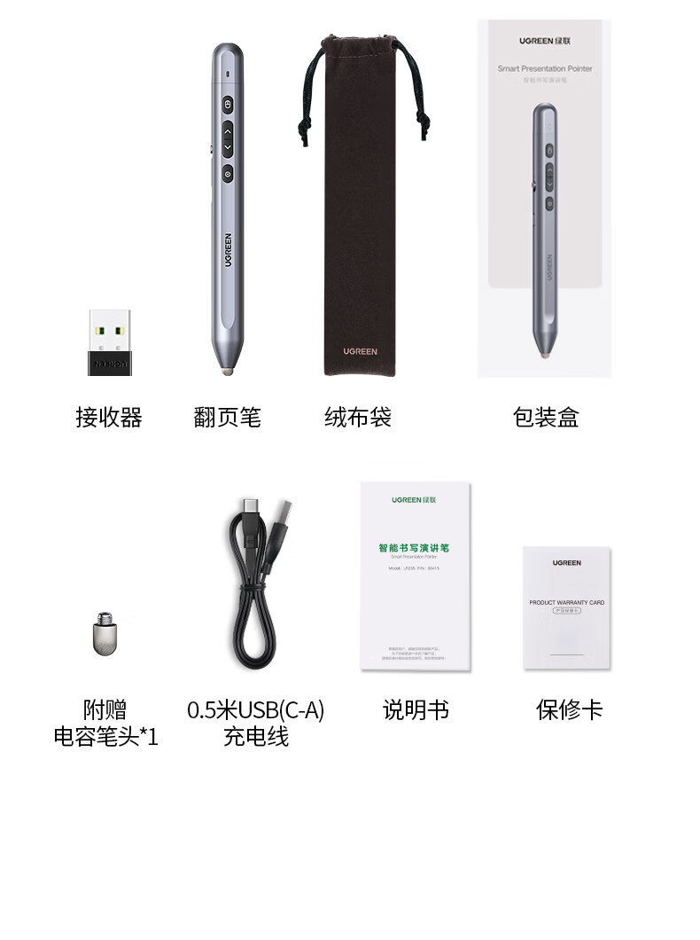 綠聯(lián)(UGREEN)激光翻頁筆 空中鼠標(biāo)聚光燈可書寫觸控筆投影筆 適用LED液晶屏希沃電子白板多媒體演講筆90415 自營