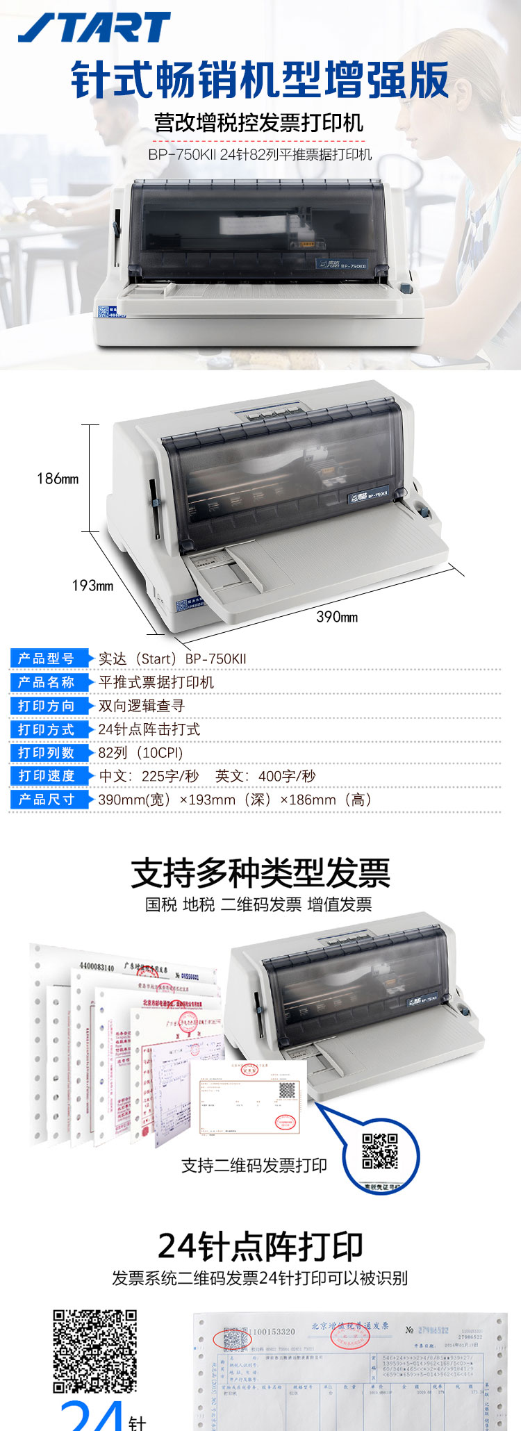¥2599.60實(shí)達(dá)(start)BP-690KPLUS 110列1+6聯(lián)平推針式打印機(jī) 稅控發(fā)票 增值稅發(fā)票 支票 快遞單票打印 商用辦公