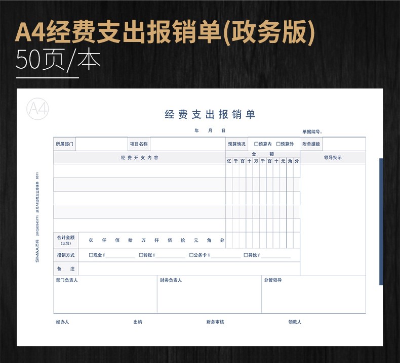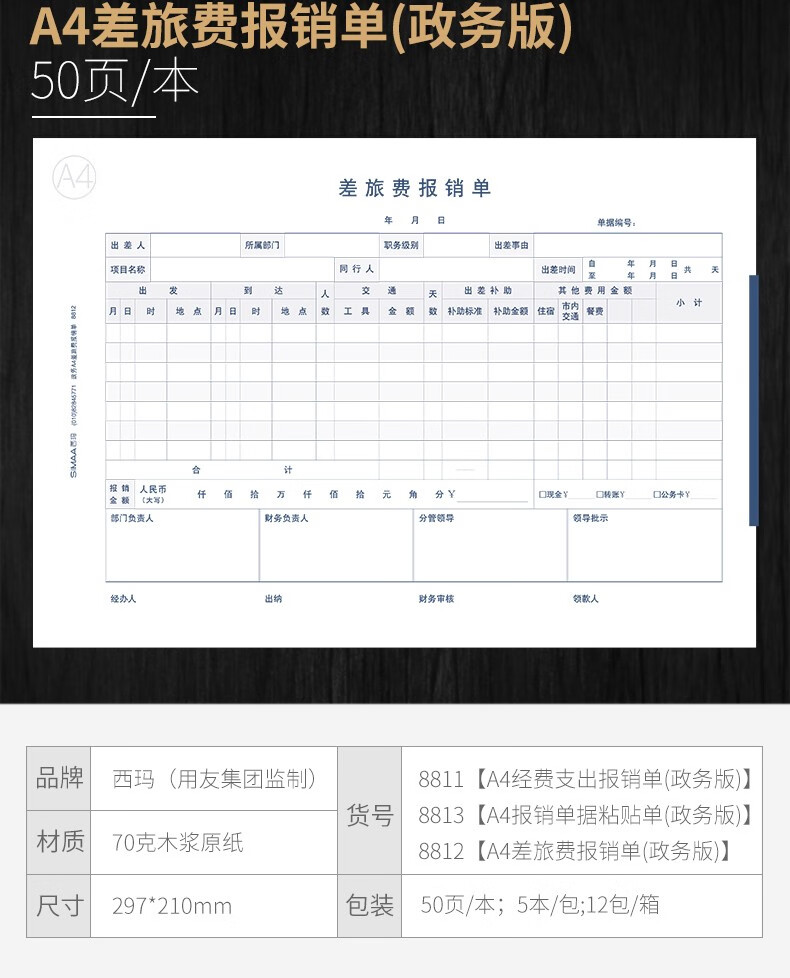 西瑪政務(wù)A4經(jīng)費(fèi)支出報銷單 70克木漿原紙 8811 50頁/本 5本/包 12包/箱 297*210mm(單包價-整箱售-拍12組) 自營