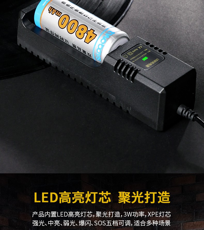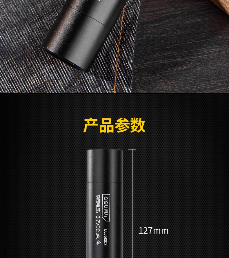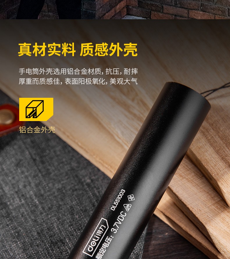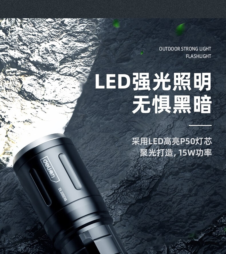 得力(deli) 強光遠射手電筒可充電式多功能變焦家用防水USB直充袖珍照明燈LED戶外亮便攜巡邏 15W 4000mAh手電筒DL551015 自營