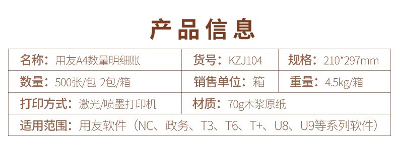 西瑪A4(297*210)數(shù)量明細賬KZJ104激光賬簿 500份/包 2包/箱(整箱售) 自營
