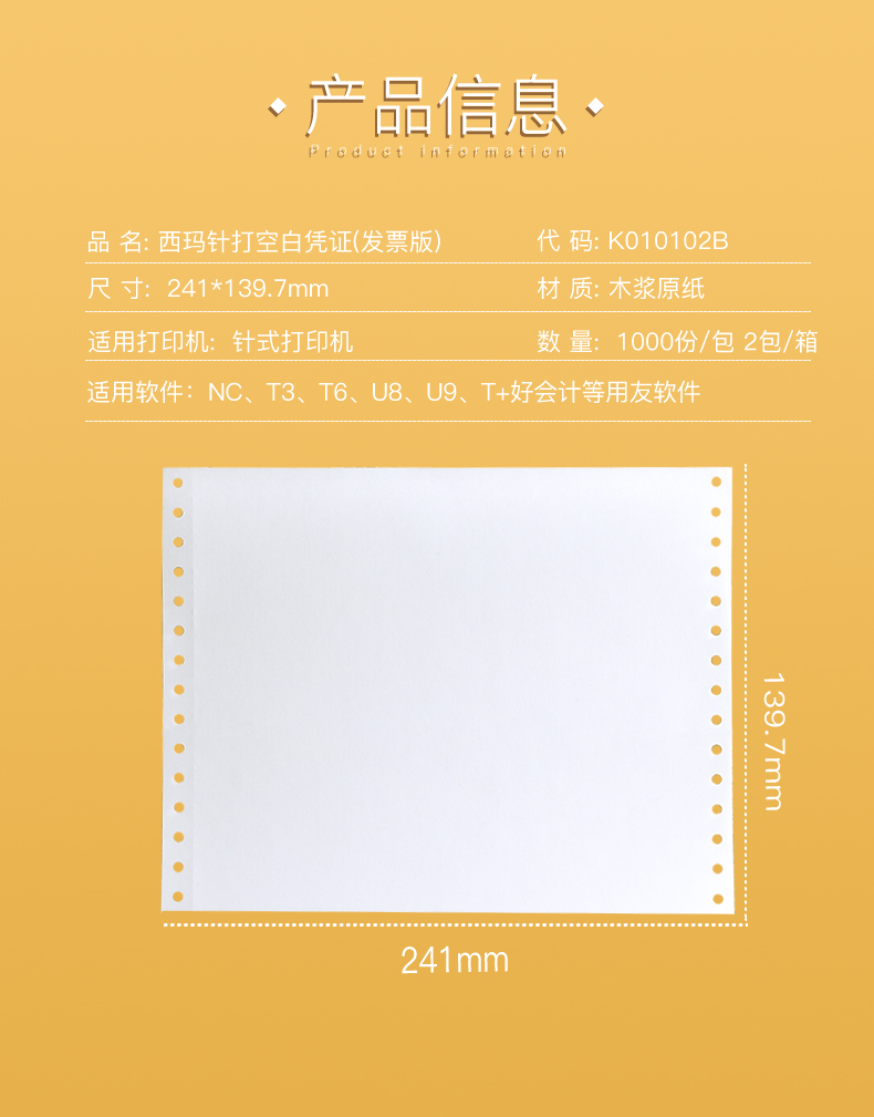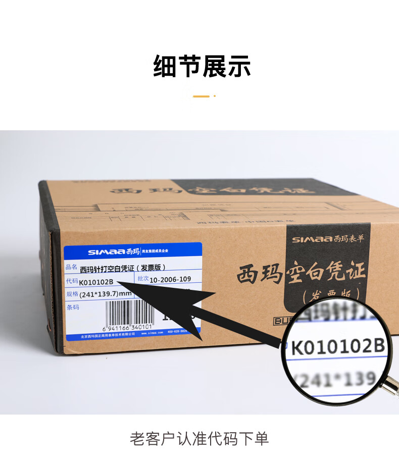 西瑪針打空白憑證(發(fā)票版)K010102B 1000份/包 2包/箱 241*139.7(整箱售) 自營(yíng)