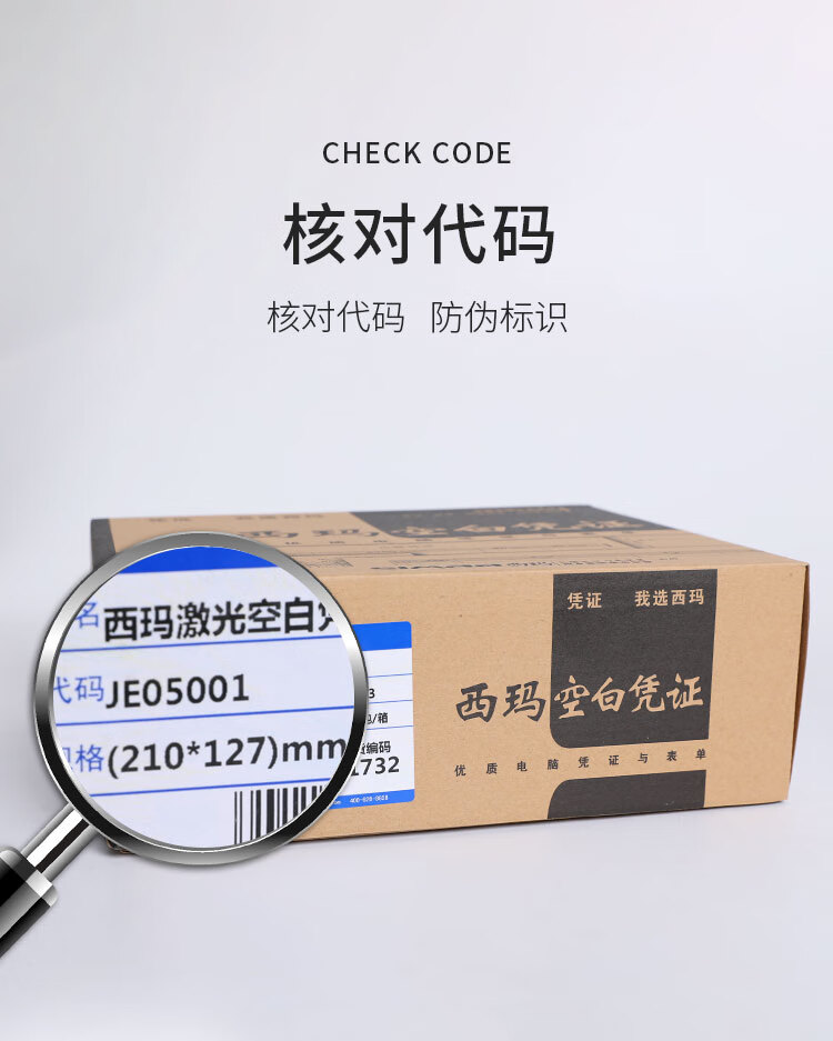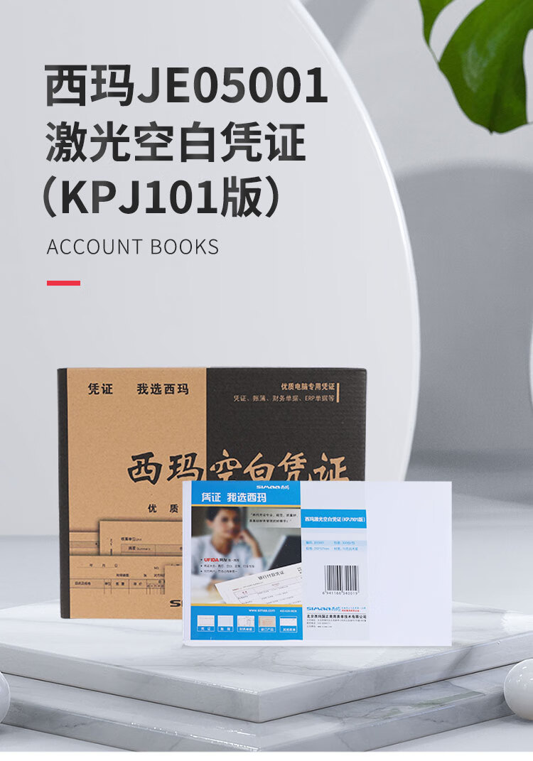 西瑪表單JE05001激光空白憑證打印紙(KPJ101版)尺寸軟件通用:210*127mm(整箱售) 自營